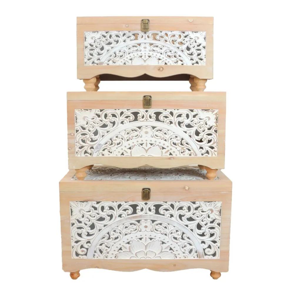 طقم صناديق خشب كريس - خشبي وابيض