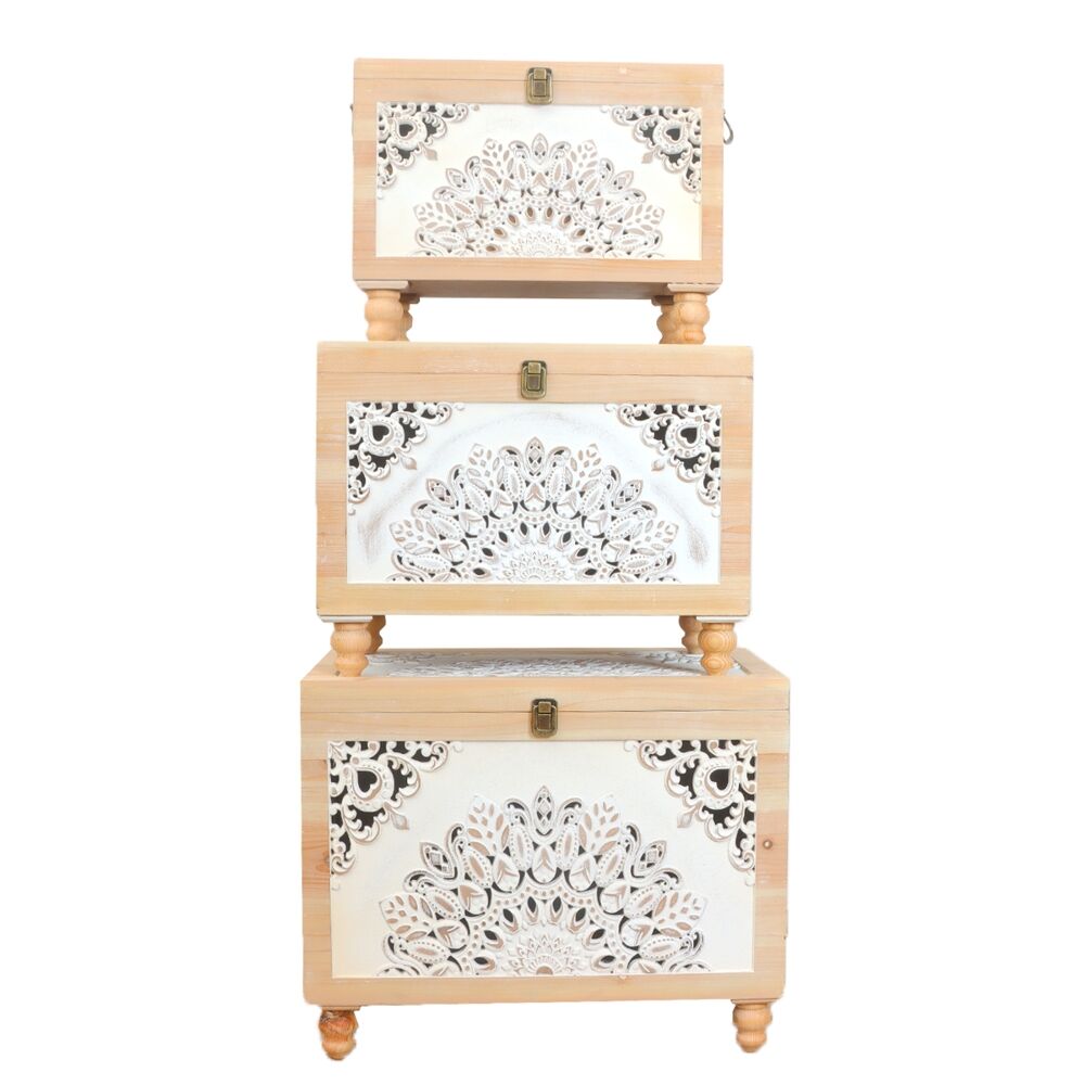 طقم صناديق خشب كينزا - بيج وابيض
