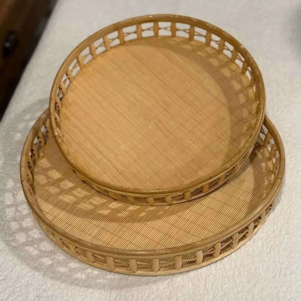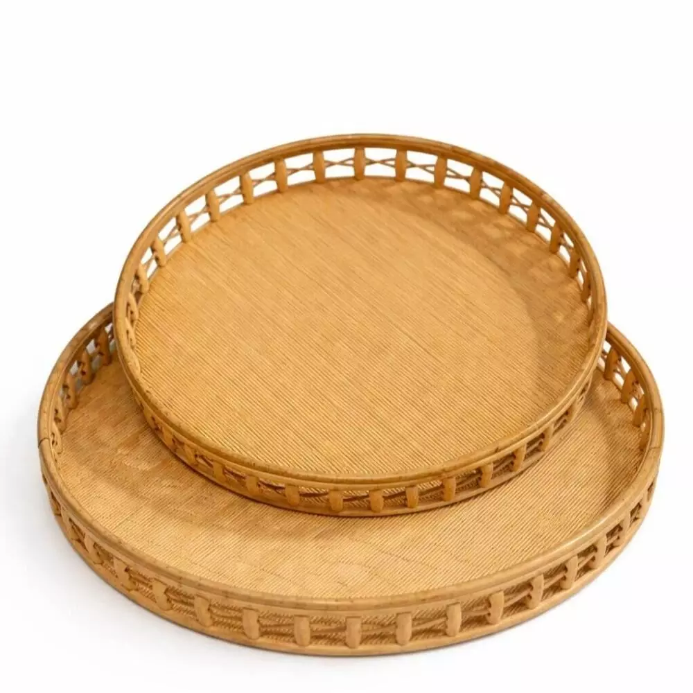 طقم صواني تقديم راتان كاير - قطعتين