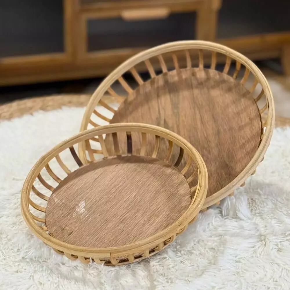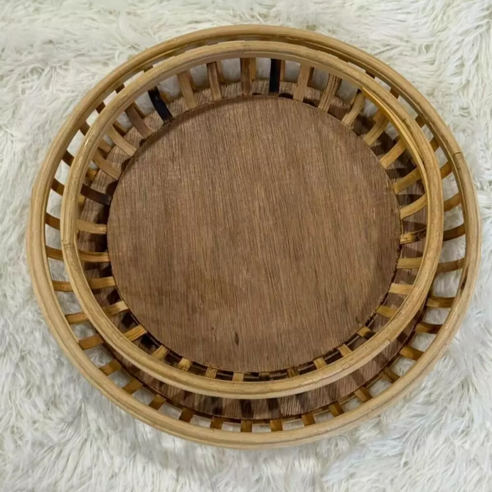 طقم صواني تقديم راتان كايف - قطعتين
