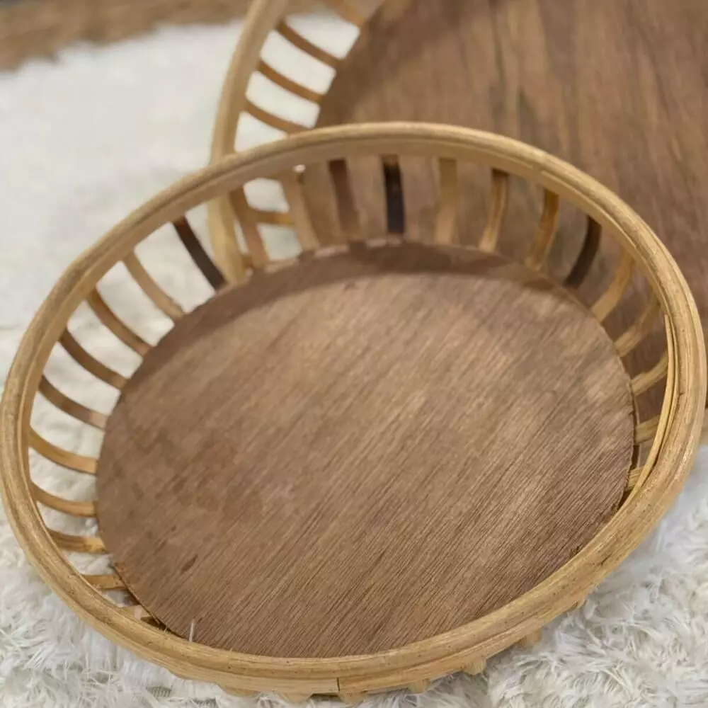 طقم صواني تقديم راتان كايف – قطعتين هو مجموعة أنيقة مصنوعة يدويًا من الخشب والراتان الطبيعي بتصميم دائري يعكس البساطة والفخامة في آنٍ واحد، ويضفي لمسة بوهيمية دافئة على أي مساحة داخل المنزل. يتميز هذا الطقم بتفاصيله الطبيعية وحوافه المرتفعة التي توفر ثباتًا عمليًا أثناء الاستخدام، مع تصميم خفيف وسهل الحمل يجعله مثاليًا للتقديم اليومي أو الضيافة. يمكن استخدامه لتقديم القهوة العربية والحلويات أو كقطعة ديكور راقية على طاولة المعيشة أو الكونسول، كما يتناغم بسهولة مع مختلف أنماط الديكور مثل الريفي والبوهيمي والمودرن، ليجمع بين الجمال الطبيعي والوظيفة العملية في قطعة واحدة متقنة الصنع.