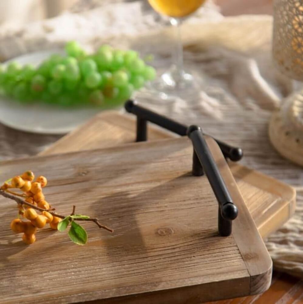 أضف إلى منزلك طابع الريف الإنجليزي الأنيق مع هذه الصواني الخشبية المصممة بدقة، بتفاصيل محفورة بطابع أنتيك ويدين من الحديد الأسود تضيف تباينًا رائعًا بين الخشب الطبيعي والمعدن الصناعي.