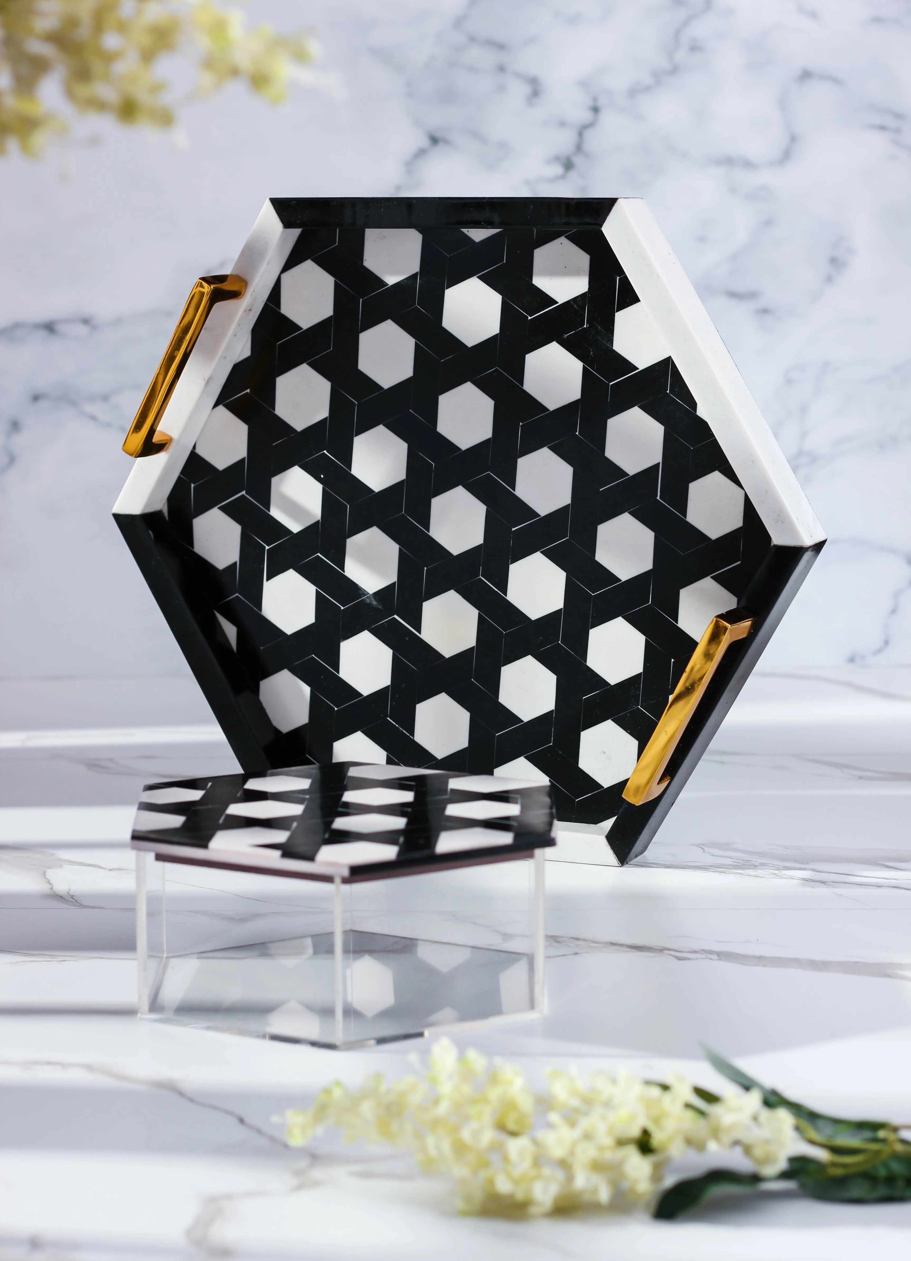 طقم صينية وصندوق تقديم أورينت بتصميم عصري هندسي وجذاب يضفي الاناقة على طاولة التقديم الخاصة بك.