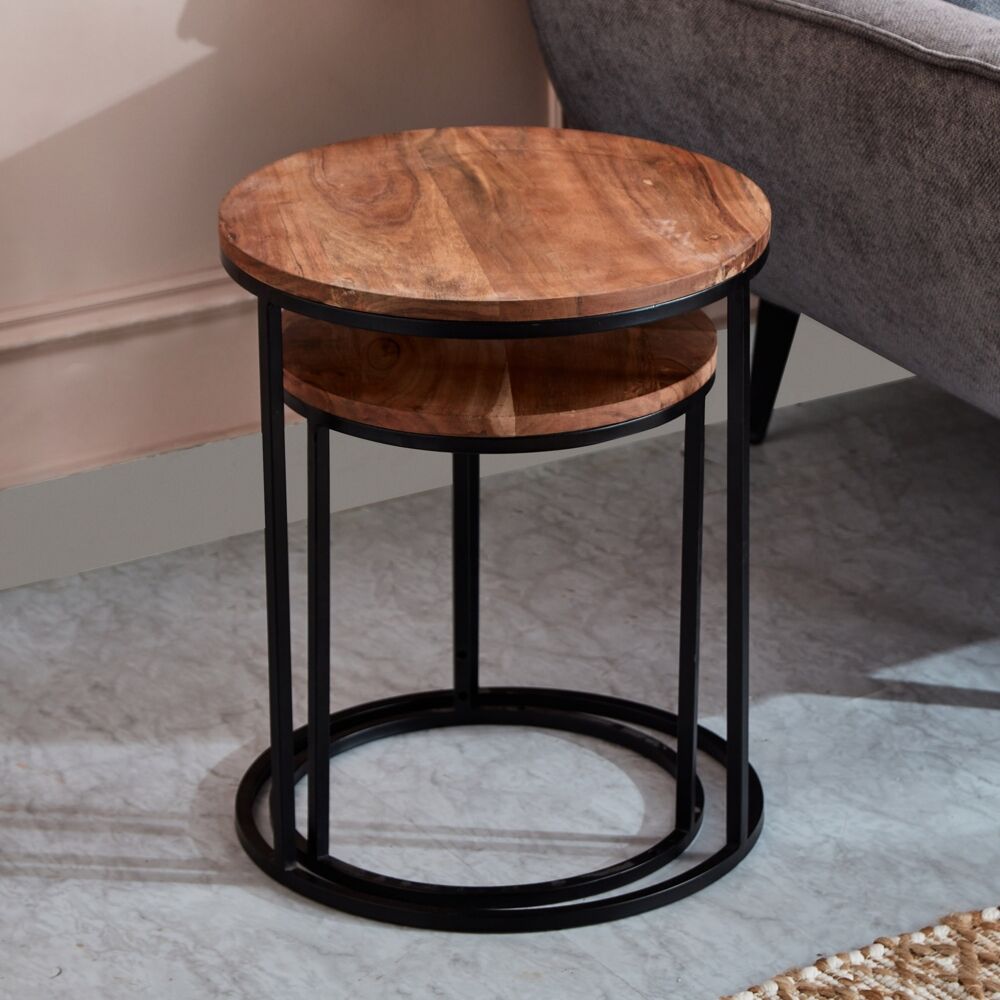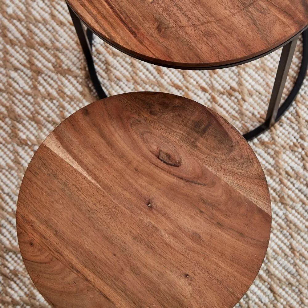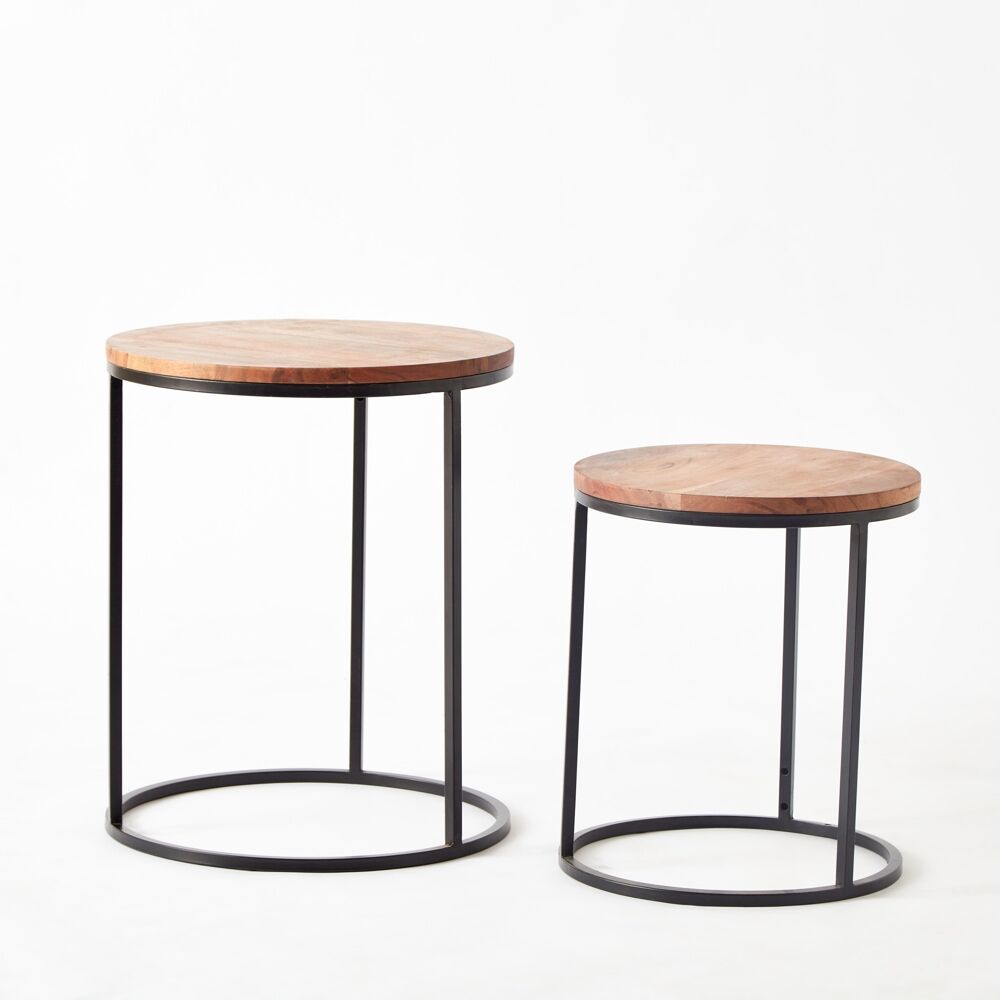 طاولة 1 القُطر: 40 سم x الوزن: 6 كجم x الارتفاع: 50 سم طاولة 2 القُطر: 33 سم x الارتفاع: 40 سم |