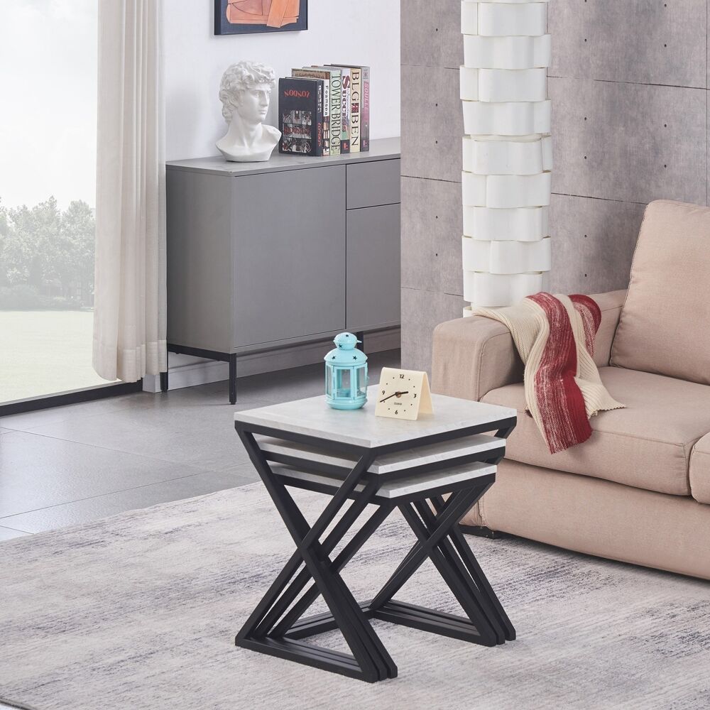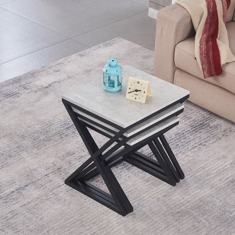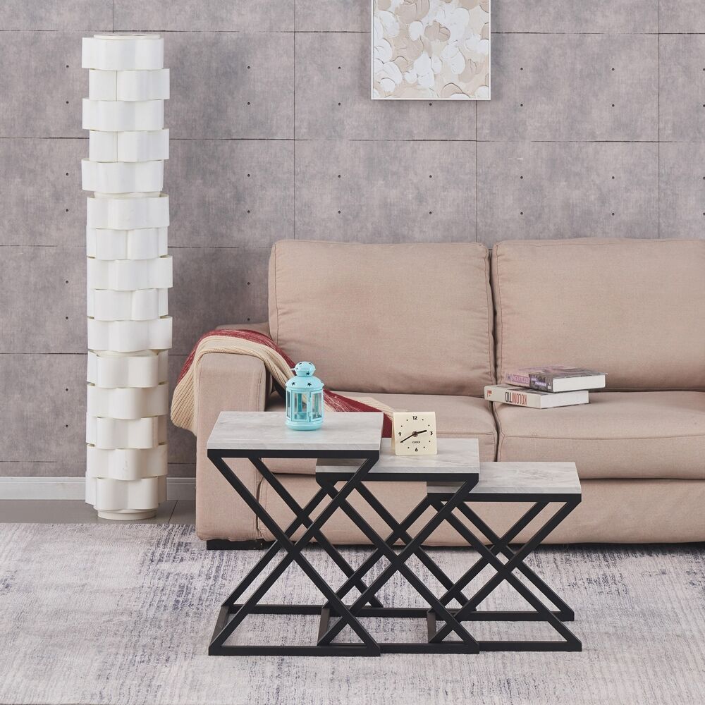طاولة 1 الوزن: 11 كجم x العمق: 40 سم x الارتفاع: 50 سم x العرض: 45 سم طاولة 2 العمق: 37 سم x الارتفاع: 45 سم x العرض: 40 سم طاولة 3 العمق: 35 سم x الارتفاع: 40 سم x العرض: 35 سم |