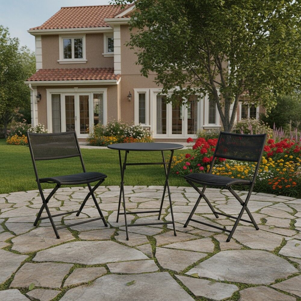 طقم طاولة دائرية قابلة للطي موناكا - 2 كراسي - اسود