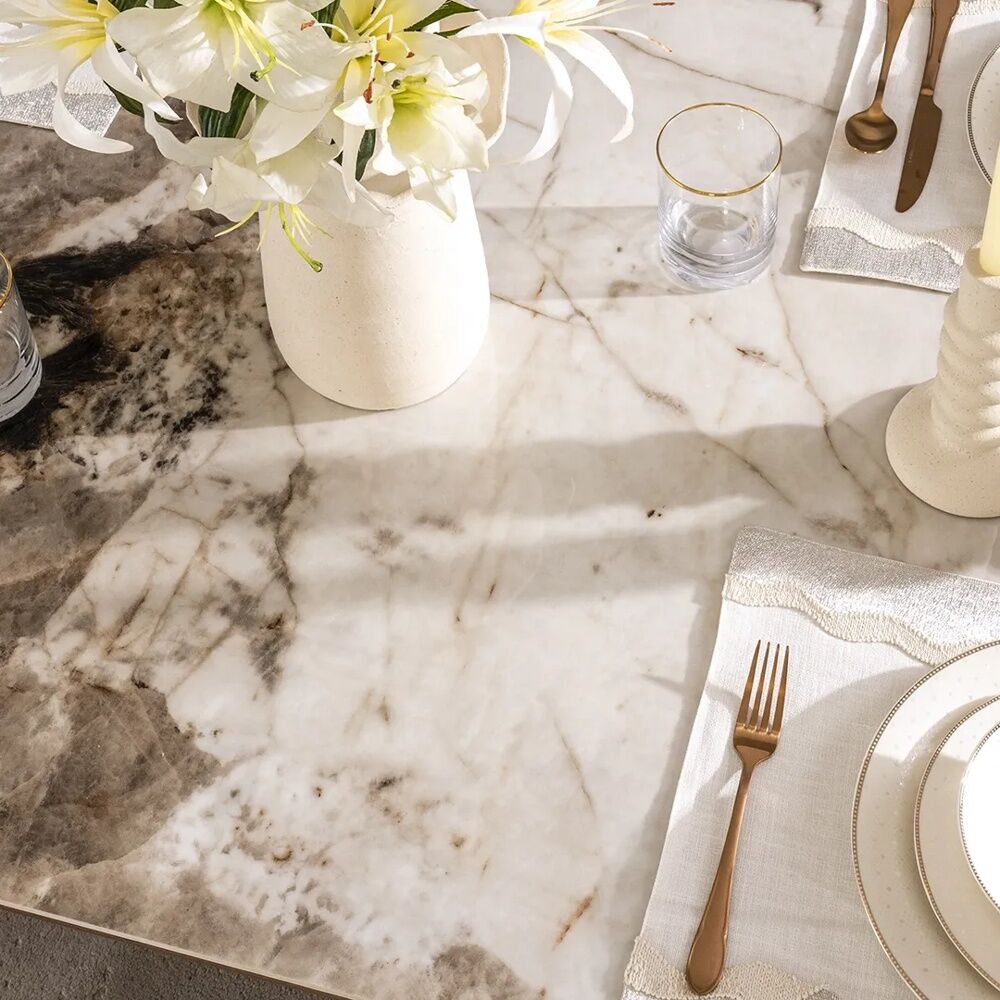 ابعاد الطاولة عرض 180 - عمق 89 - ارتفاع 79 سم ابعاد الكرسي عرض 59 - عمق 53 - ارتفاع 86 سم ابعاد قاعدة البوفيه عرض 160 - عمق 40 - ارتفاع 79 سم |
