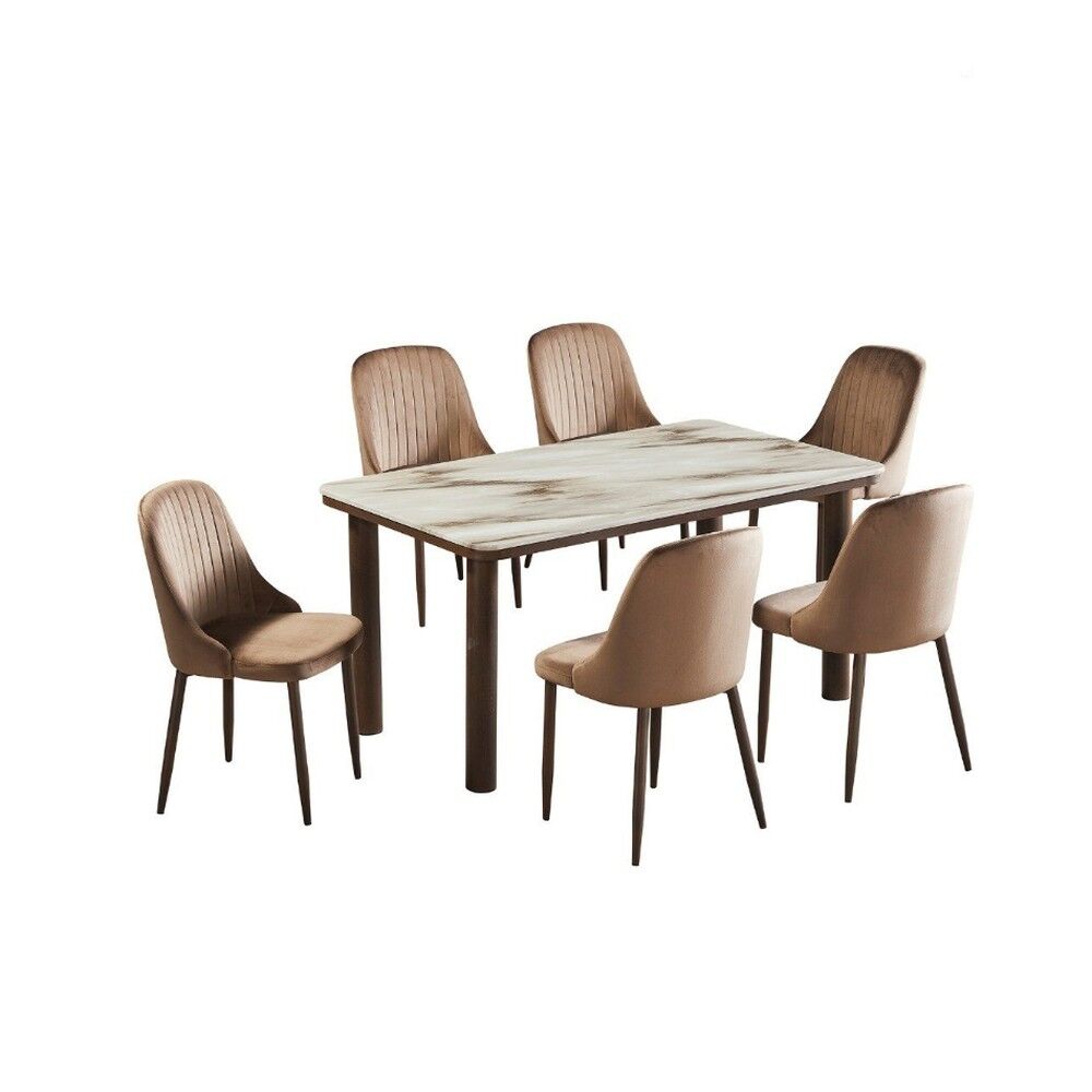 طقم طاولة طعام ميرنا 6 اشخاص رخام - بني