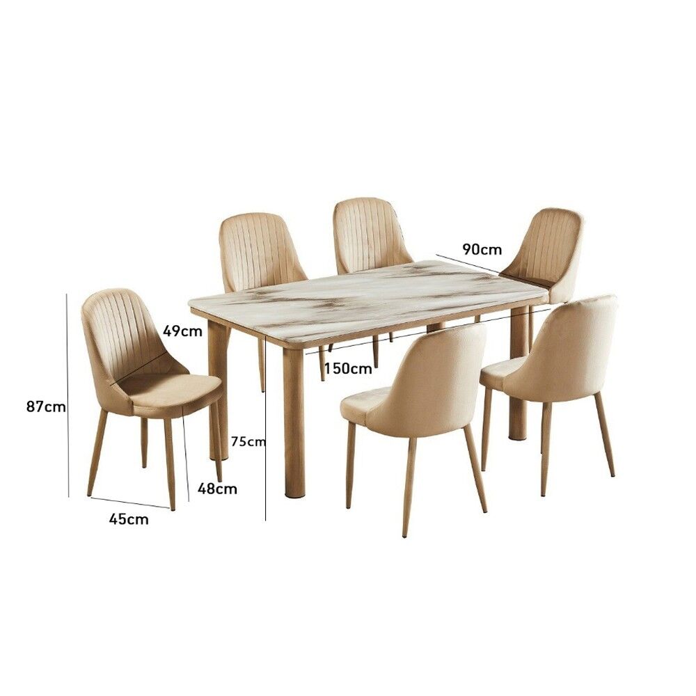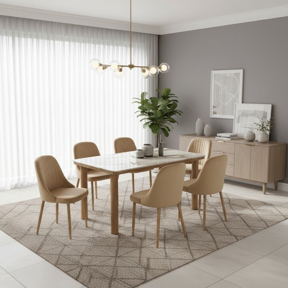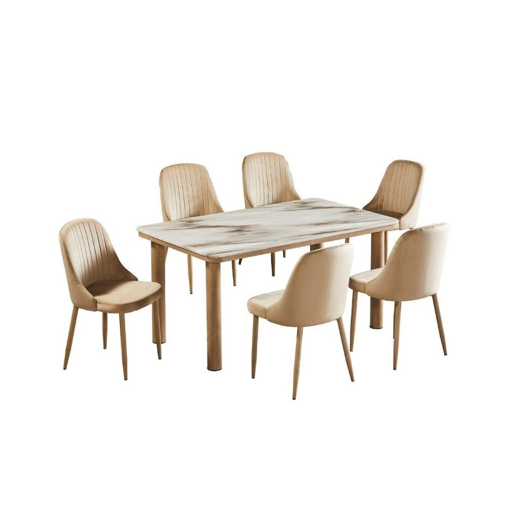 طقم طاولة طعام ميرنا 6 اشخاص رخام - بيج