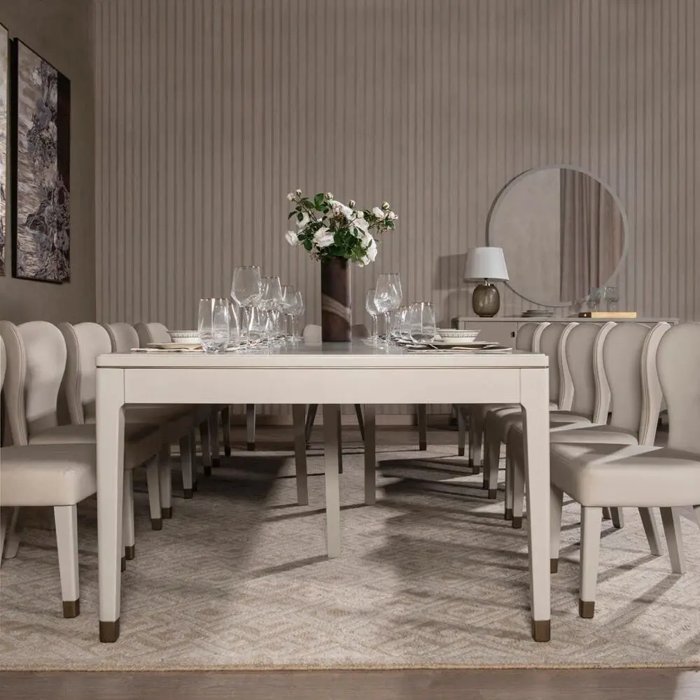 طقم طاولة طعام وكراسي ل 12 شخص روفر - بيج