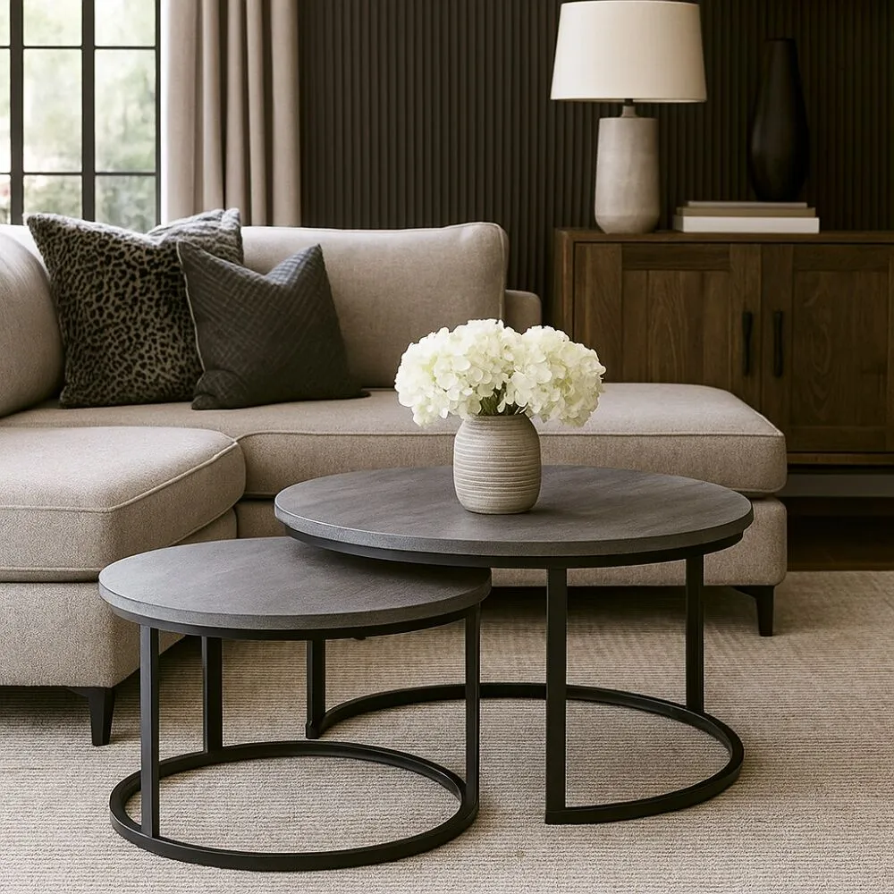 يُعدّ طقم طاولات القهوة إضافة مثالية لغرفة المعيشة، حيث يجمع بين الجمال والوظيفة في تصميم متناسق يضفي على المكان إحساسًا بالدفء والتنظيم.