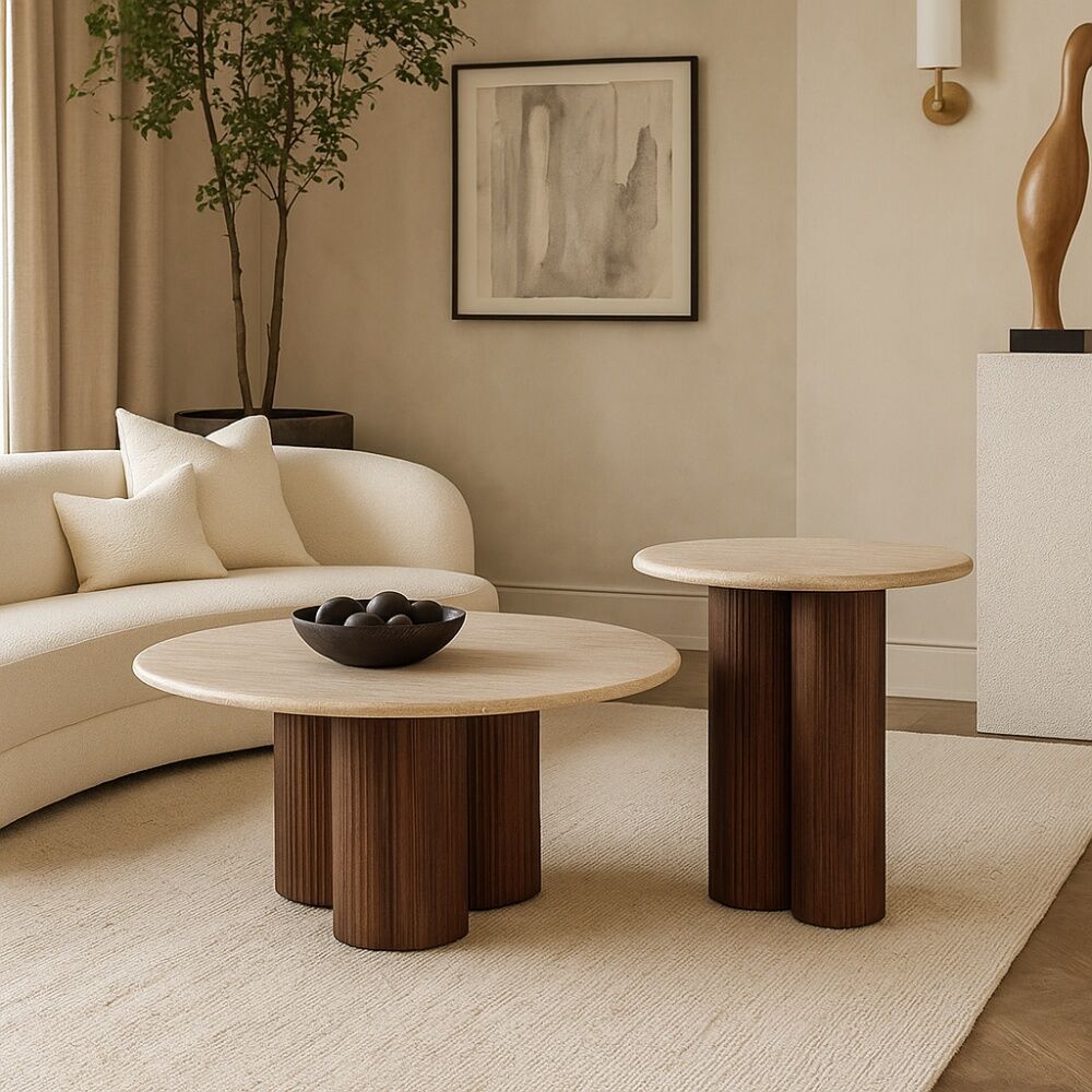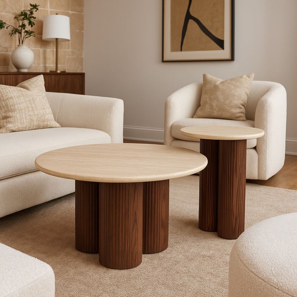 يُعدّ طقم طاولات القهوة إضافة مثالية لغرفة المعيشة، حيث يجمع بين الجمال والوظيفة في تصميم متناسق يضفي على المكان إحساسًا بالدفء والتنظيم.