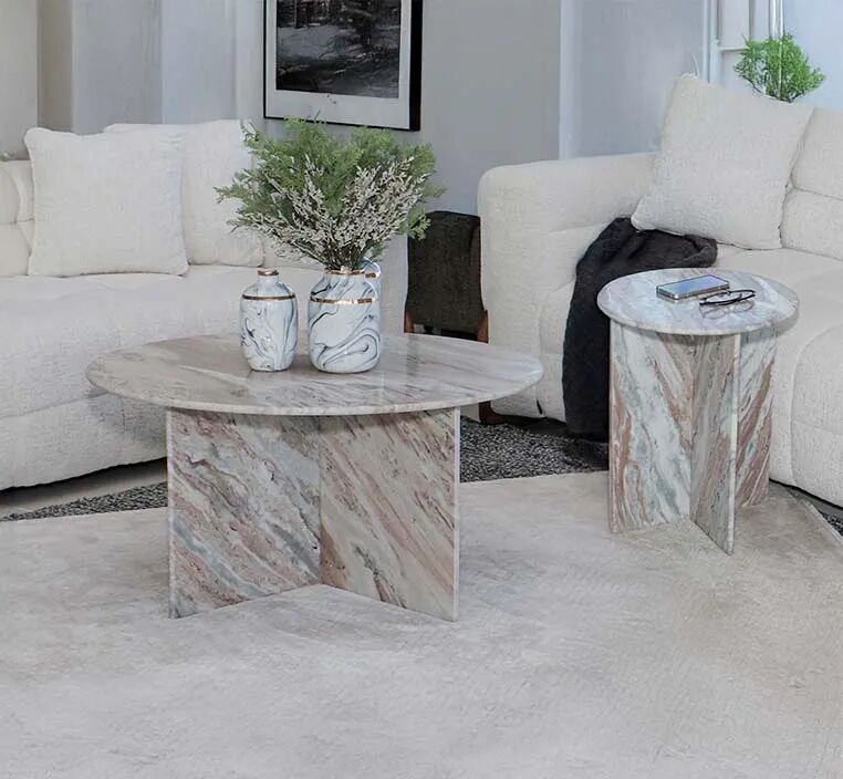 | يتضمن الطقم | 1 طاولة قهوة - 1 طاولة جانبية |