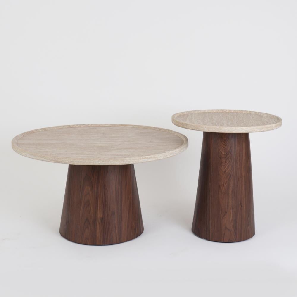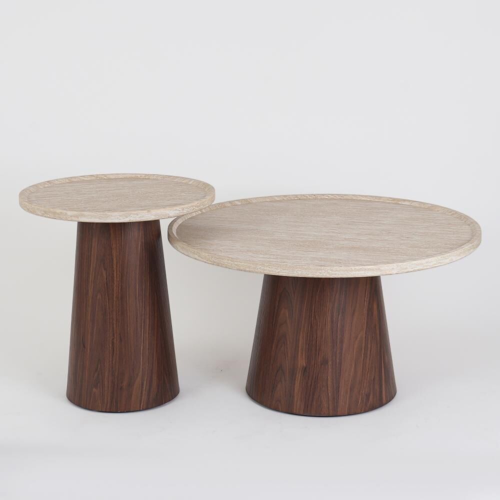 طاولة قهوة راوندي قطعتين - بني وبيج