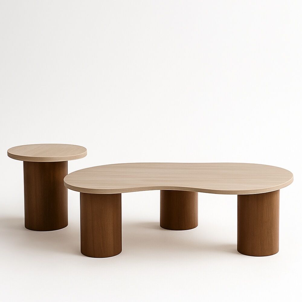 طقم طاولة قهوة مودرين سَكون - 2 قطع - بني وبيج