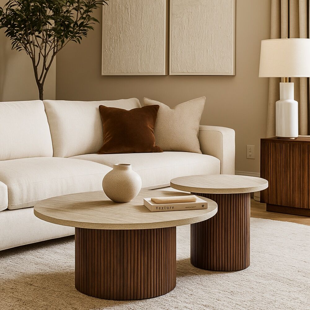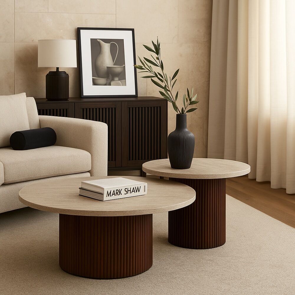 يُعدّ طقم طاولات القهوة إضافة مثالية لغرفة المعيشة، حيث يجمع بين الجمال والوظيفة في تصميم متناسق يضفي على المكان إحساسًا بالدفء والتنظيم.