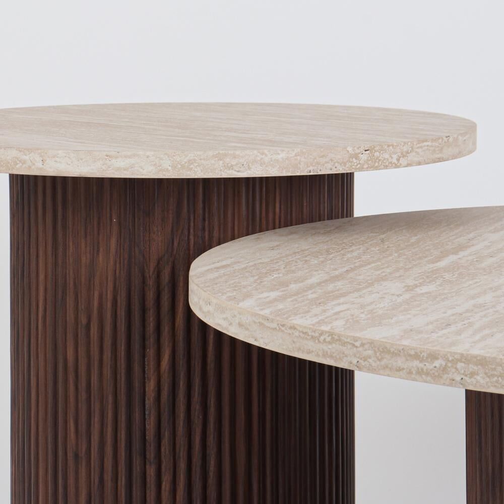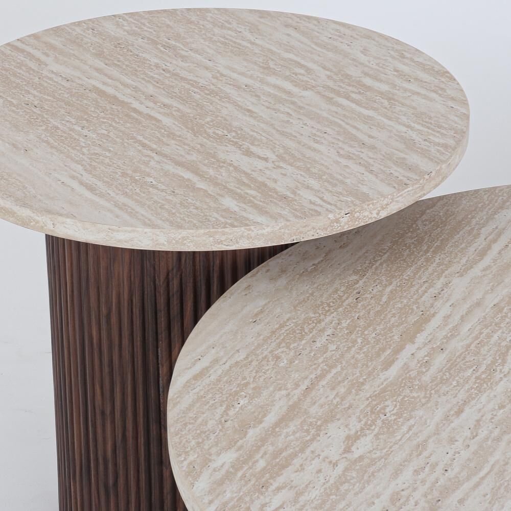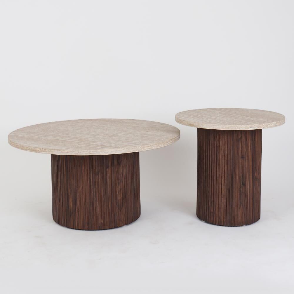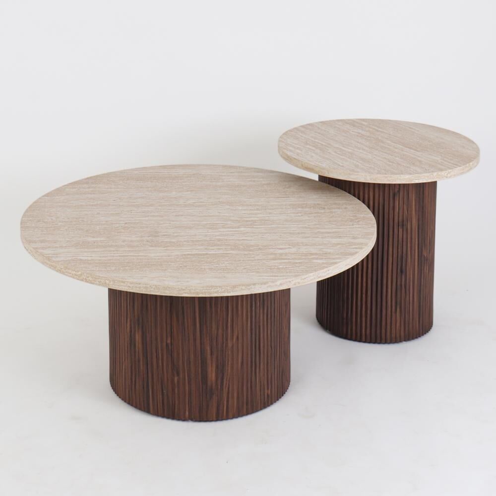 طاولة قهوة كاتالي خشبية و سطح رخامي بني - قطعتين