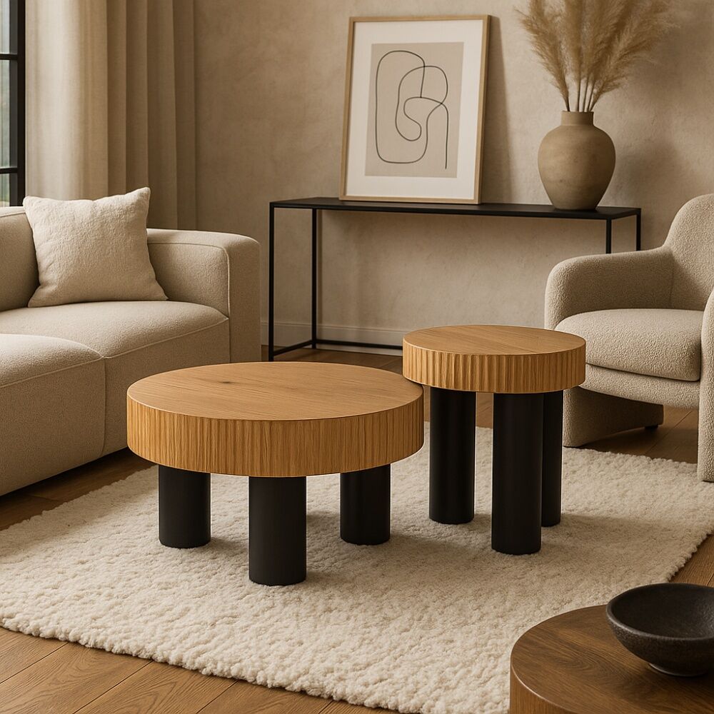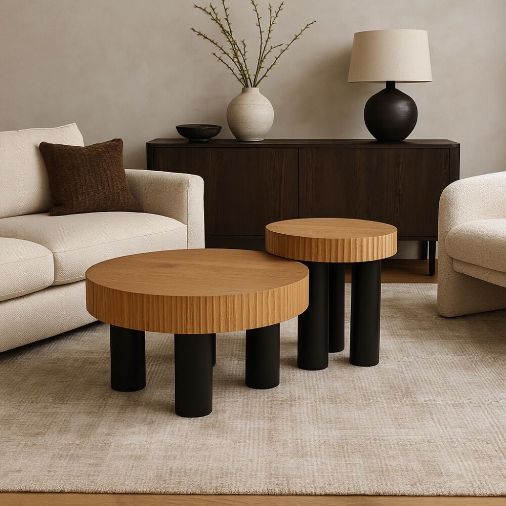 يُعدّ طقم طاولات القهوة إضافة مثالية لغرفة المعيشة، حيث يجمع بين الجمال والوظيفة في تصميم متناسق يضفي على المكان إحساسًا بالدفء والتنظيم.