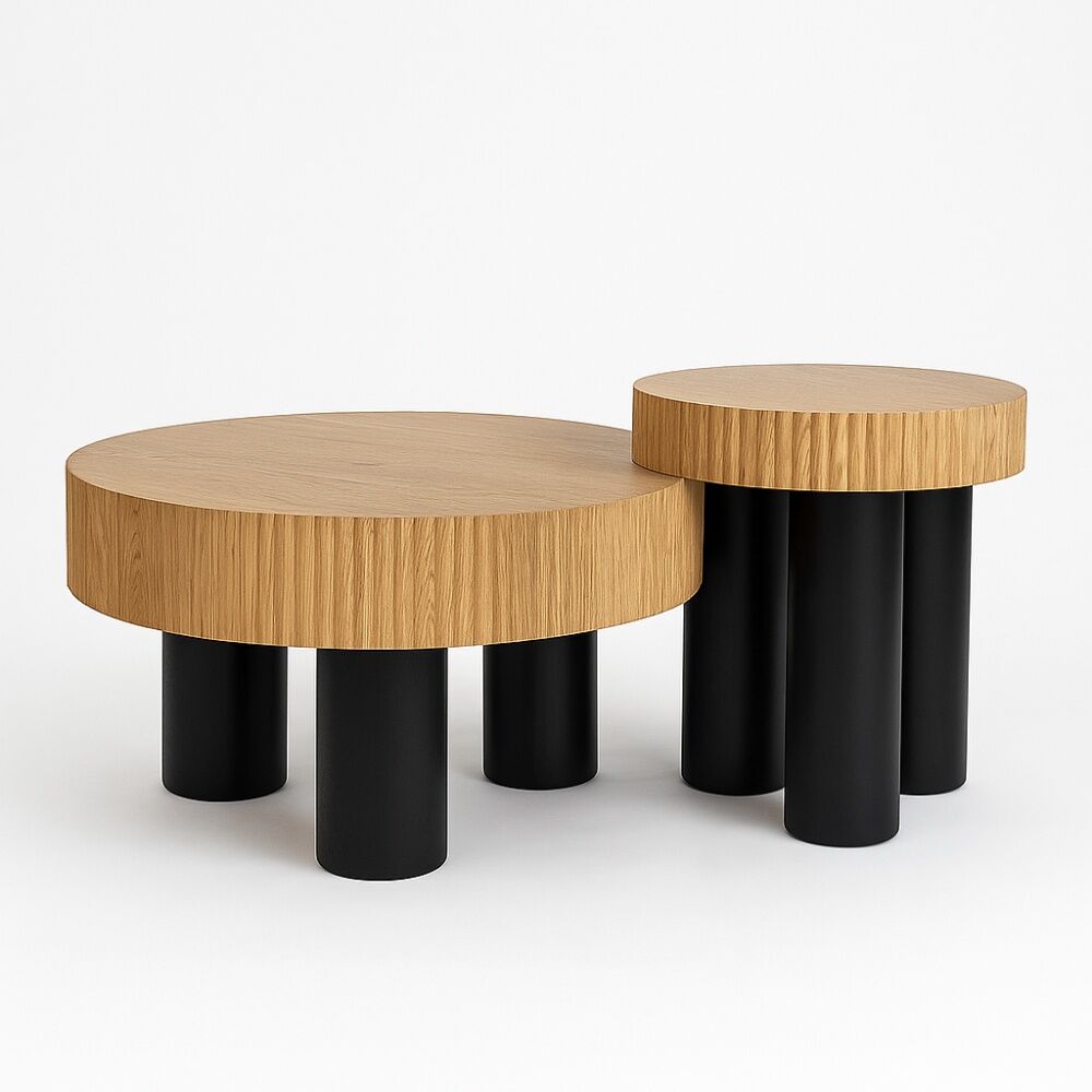 طقم طاولة قهوة هورف - 2 قطع - خشبي فاتح واسود