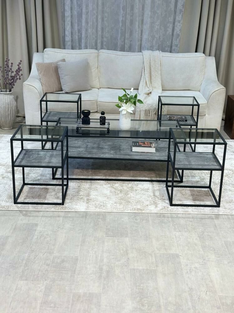ارتقِ بأناقة مجلسك مع هذا الطقم العصري ، بتصميم عملي فريد من طابقين يجمع بين الفخامة والوظيفة.