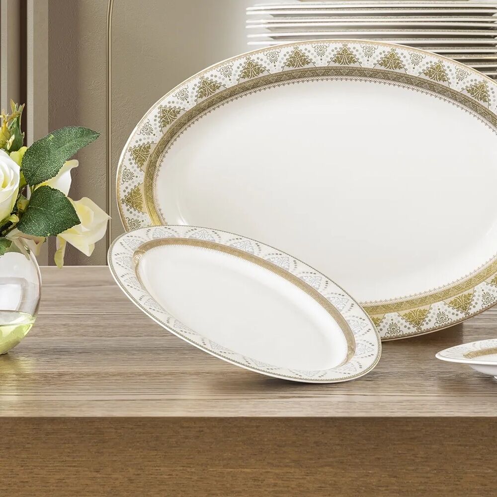 صحن عشاء 12 قطعة زبدية للشوربة 12 قطعة صحن للمقبلات أو الحلويات 12 قطعة زبدية 12 قطعة صحن للتقديم 2 قطعة صحن للتقديم 1 قطعة زبدية لتقديم السلطات أو الفواكه 1 قطعة غطاء للإناء 1 قطعة ملاحة وأوعية زيت وخل 2 قطعة |