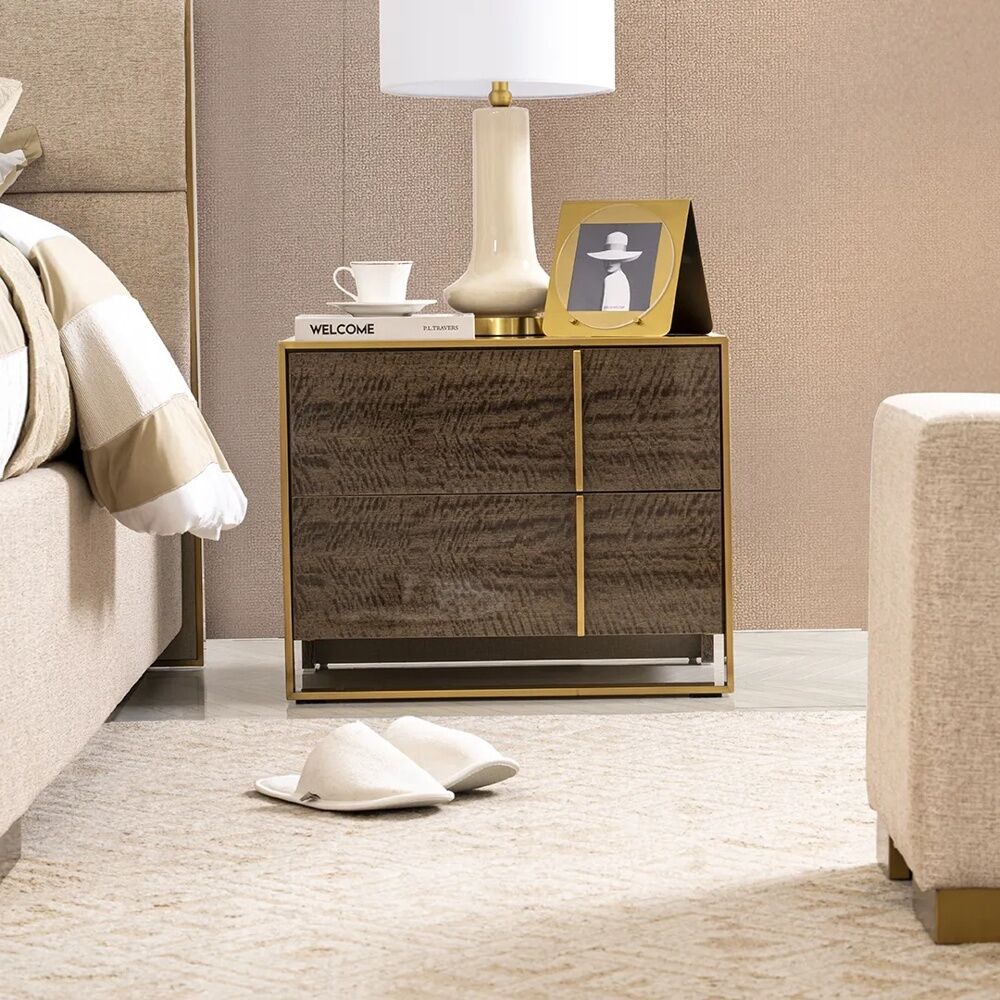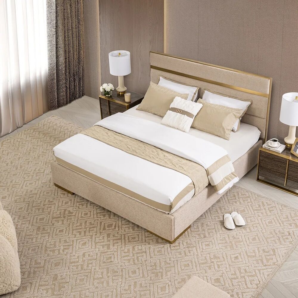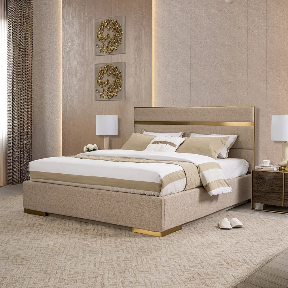 طقم غرفة نوم بيرغو كينغ 180X200 سم شحن لا سلكي - بني وبيج