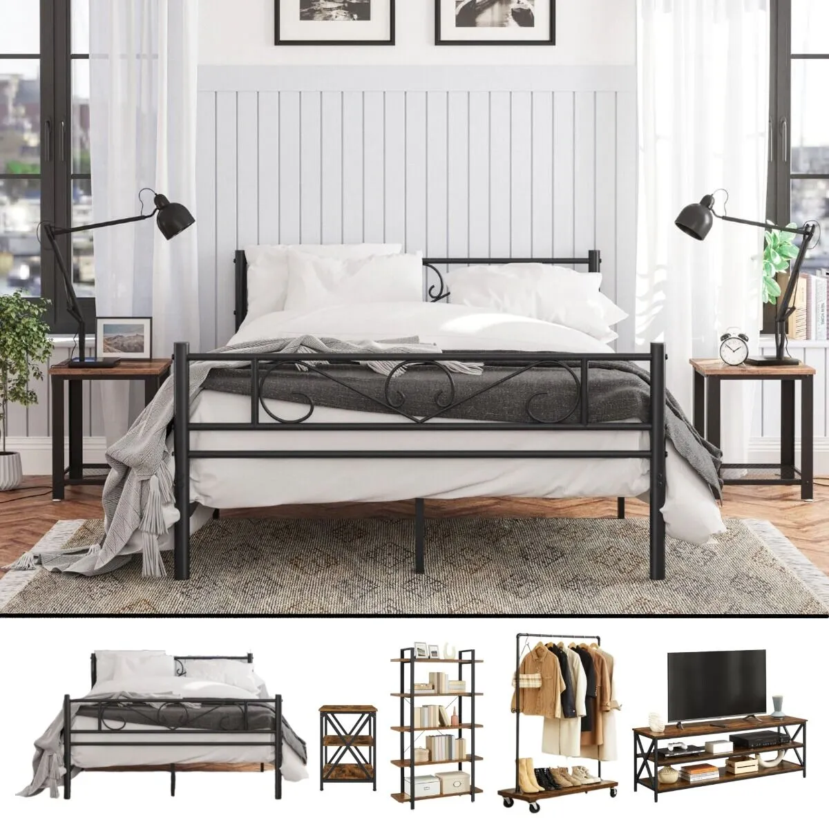تتميز منتجات بيتونيا بالجودة العالية والمتانة الطويلة الأمد. تم تصنيع مجموعة غرفة النوم هذه من الحديد المقاوم للصدأ والخشب والمعدن، لتقديم تجربة استخدام مميزة.
