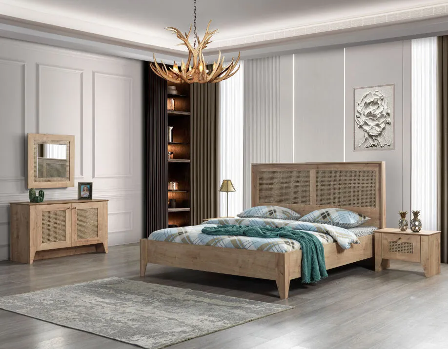• الخشب المغطى بطبقة راتان لصق: يضفي جمالًا طبيعيًا وأناقة عصرية، مع متانة تضمن لك الاستمتاع بالغرفة لسنوات عديدة.