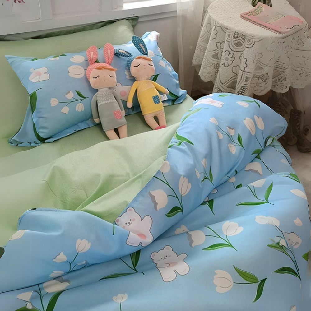 يتضمن الطقم 1 غطاء لحاف - 1 غطاء سرير - 2 غطاء وسادة