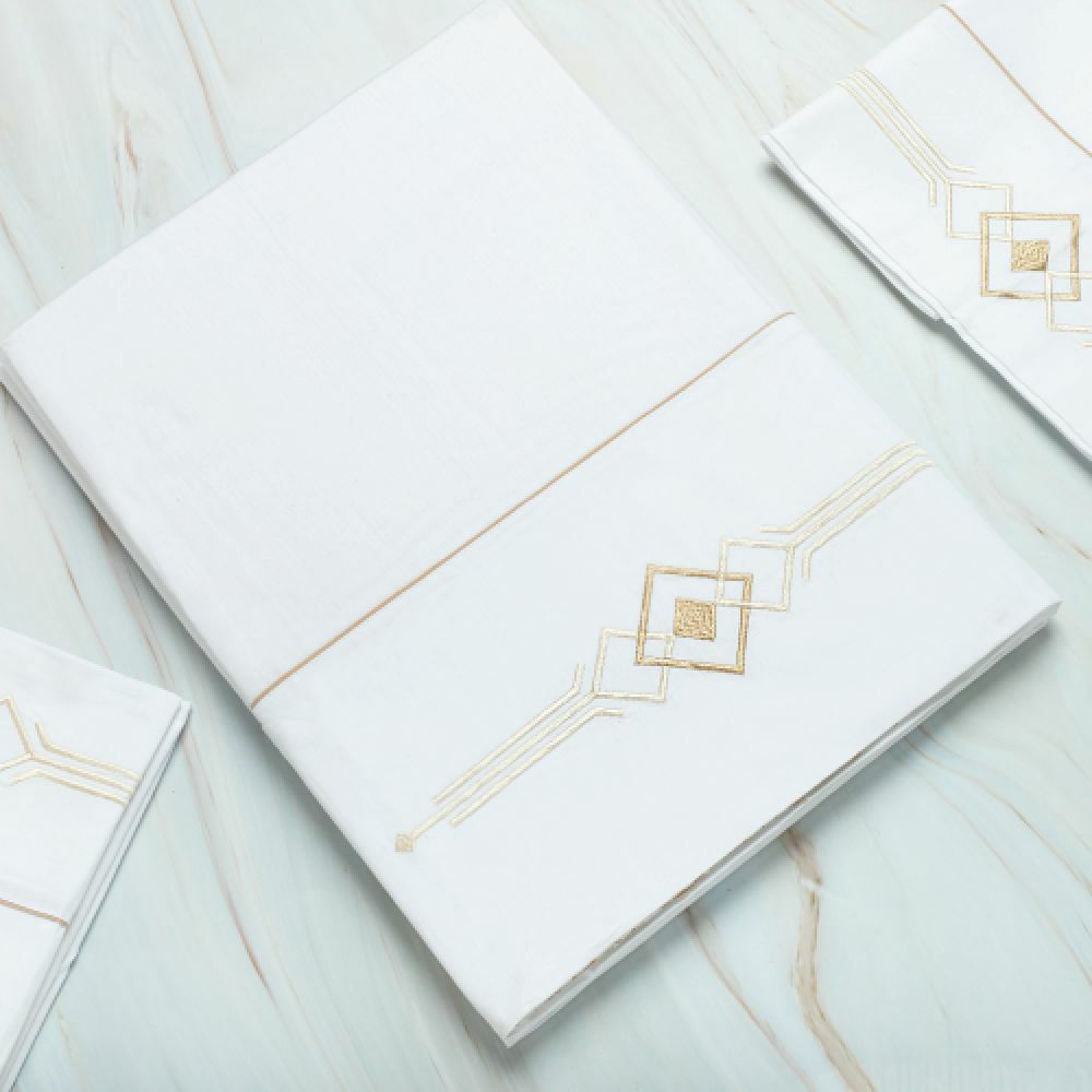 2 غطاء وسادة مطرز 2 غطاء وسادة ساده 1 شرشف سرير مطرز 1 ملاية سرير |