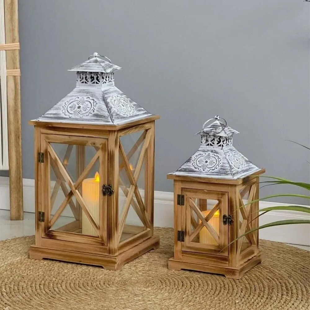 طقم فانوس خشب قطعتين
