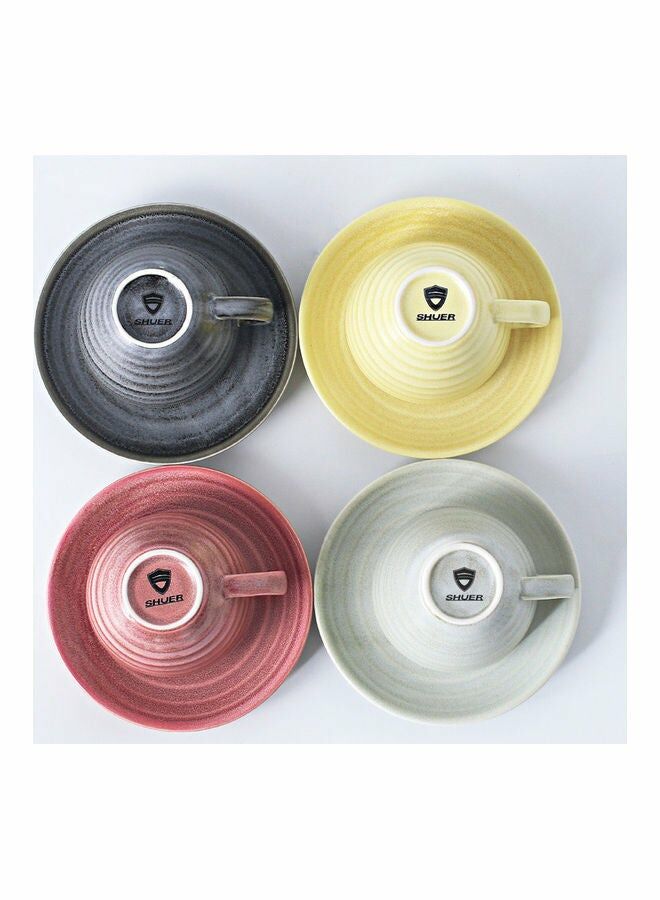 طقم فناجين قهوة مع صحون من السيراميك - 4 أشخاص