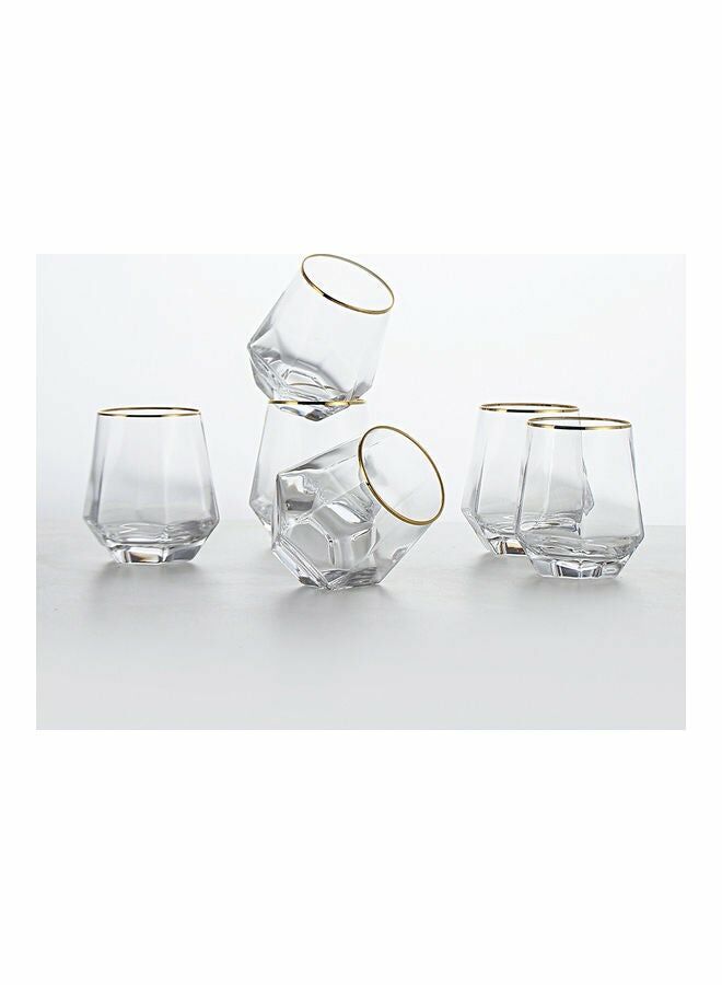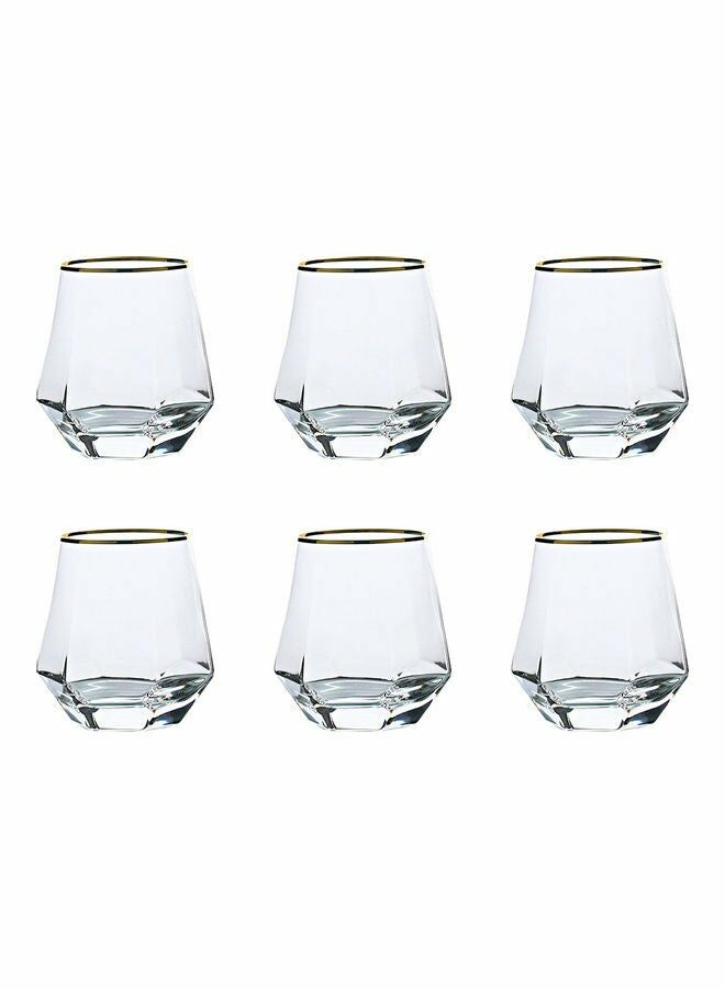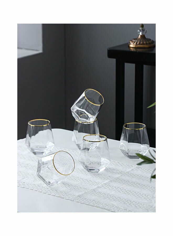 طقم كاسات زجاجي بتصميم سداسي - 6 قطع - شفاف وذهبي