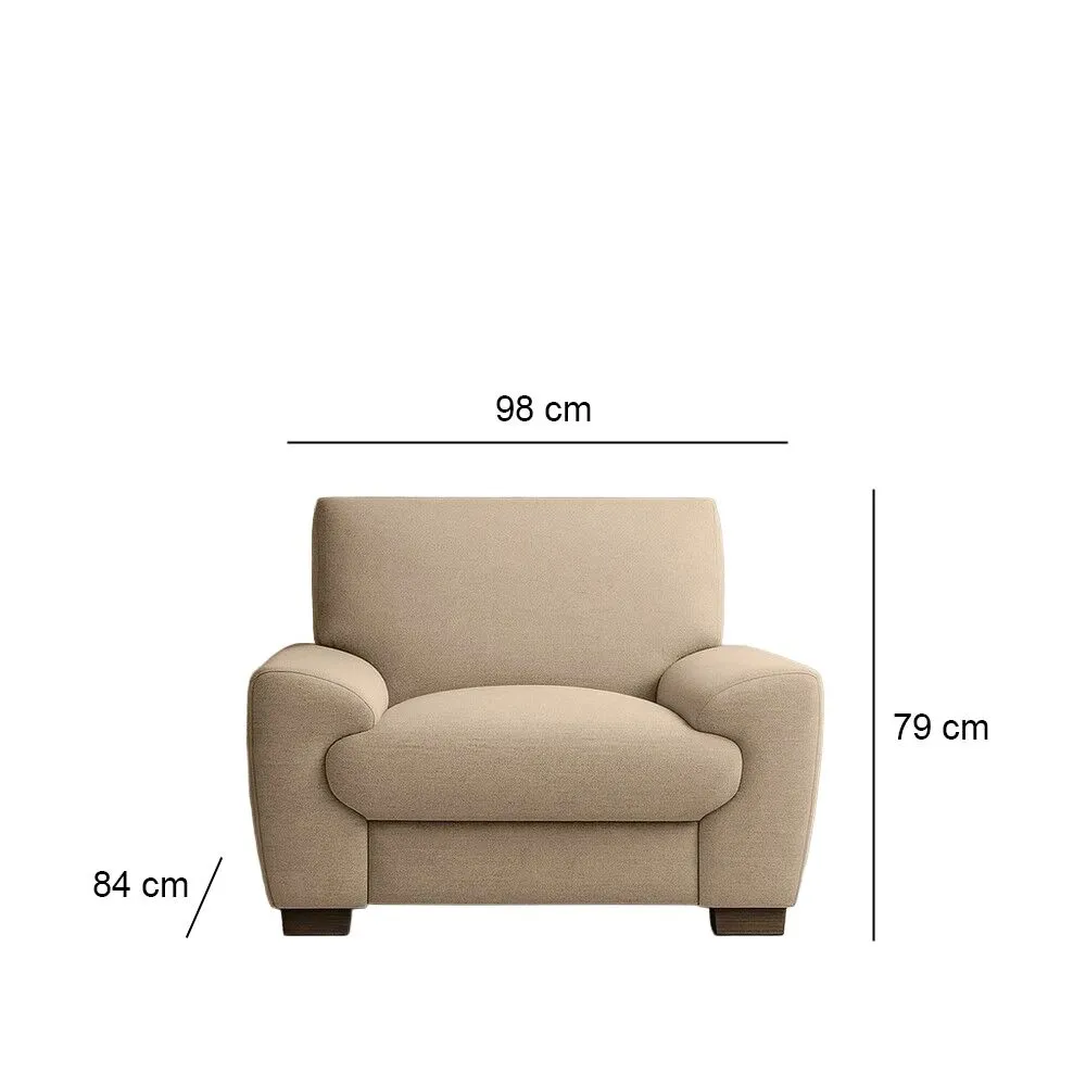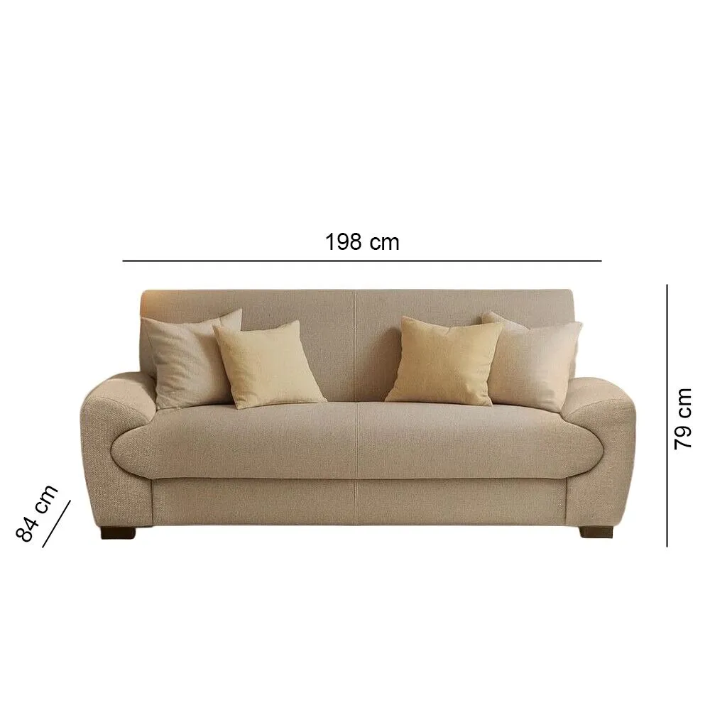 الكنبة الثلاثية : العرض 198 - العمق 84 - الارتفاع 79- ار تفاع الارجل : 5 سم - الوزن 41 كغم الكنبة الثنائية : العرض 149 - العمق 84 - الارتفاع 79 -ارتفاع الارجل : 5 سم - الوزن 32كغم الكنبة المفرد : العرض 98 - العمق 84 - الارتفاع 79 - ارتفاع الارجل : 5 سم الوزن 25 كغم |