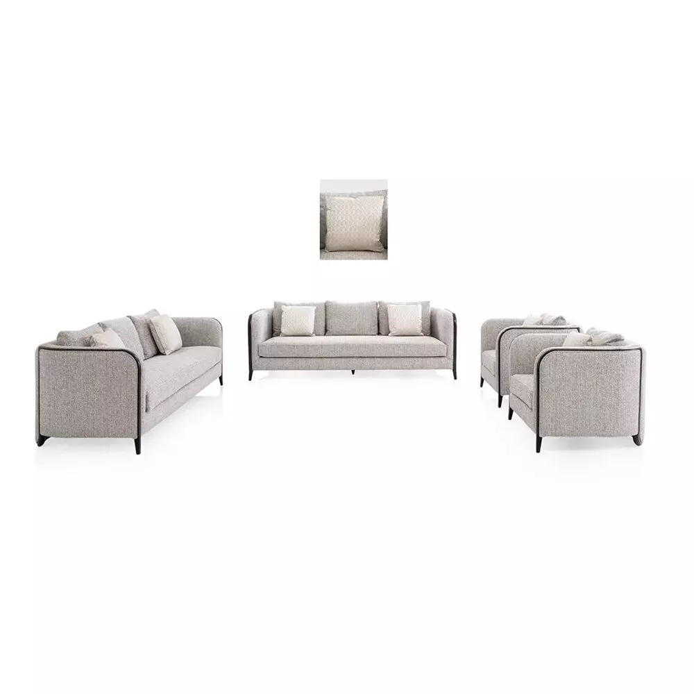 | يتضمن الطقم | كنبة ثلاثة مقاعد بأيدي 2 قطعة - كنبة مقعد واحد 2 قطعة - وسادة مربعة للديكور 8 قطعة - وسادة مربعة للديكور 6 قطعة |
