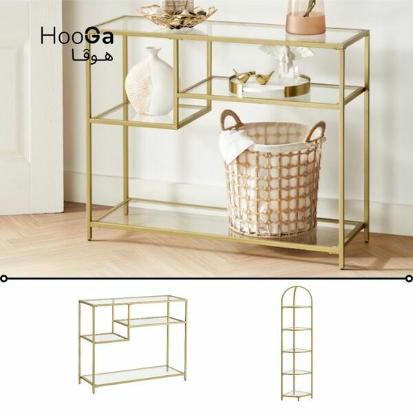 أنت تراجع:طقم طاولة كونسول هوقا معدن و سطح زجاج ذهبي - قطعتين
