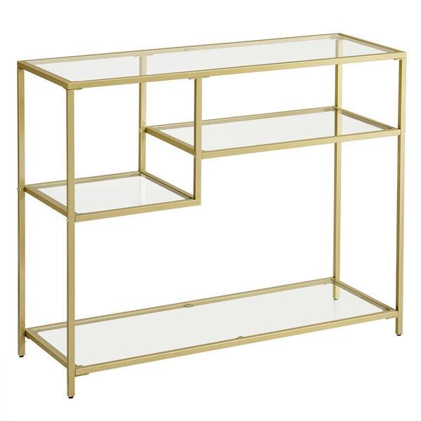طقم طاولة كونسول هوقا معدن و سطح زجاج ذهبي - قطعتين