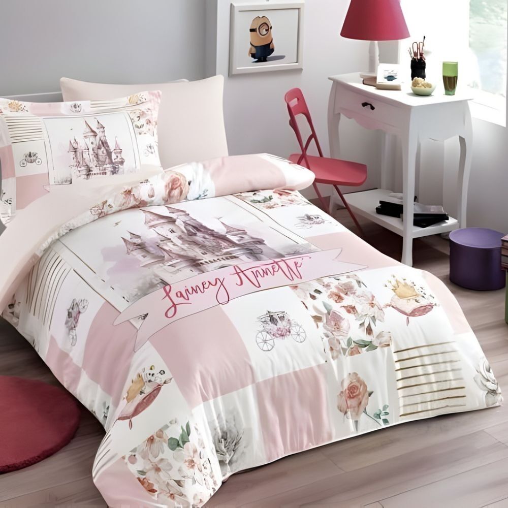 يتضمن الطقم 1 لحاف - 1 شرشف - 1 غطاء وسادة بحواف - 1 غطاء وسادة بدون حواف