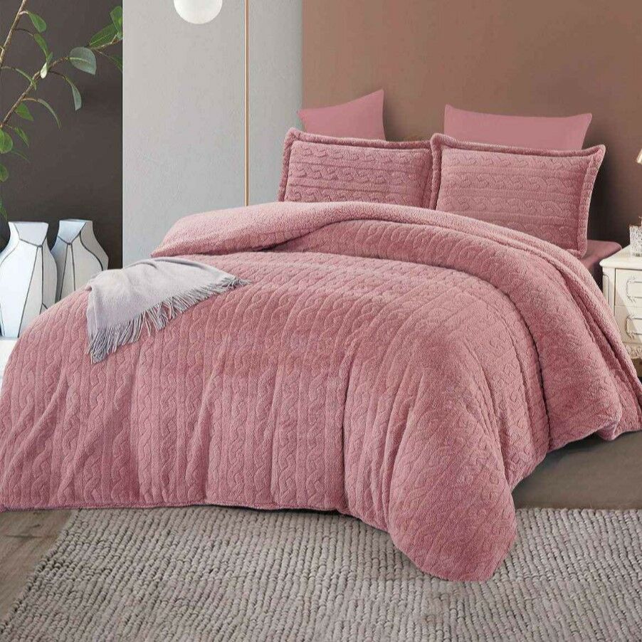 أنت تراجع:طقم لحاف كوين جاكار فرو سادة 4 قطع - وردي