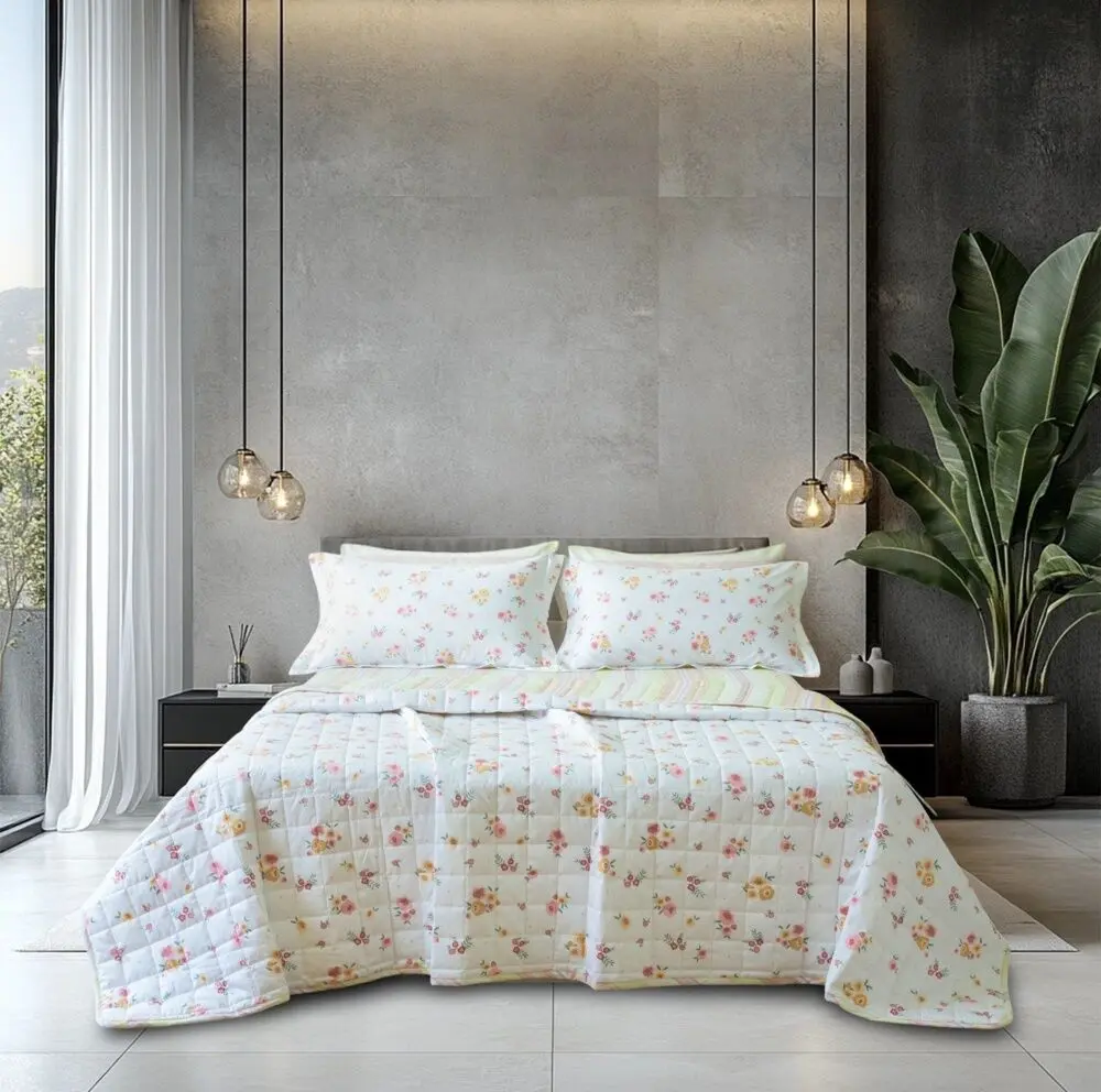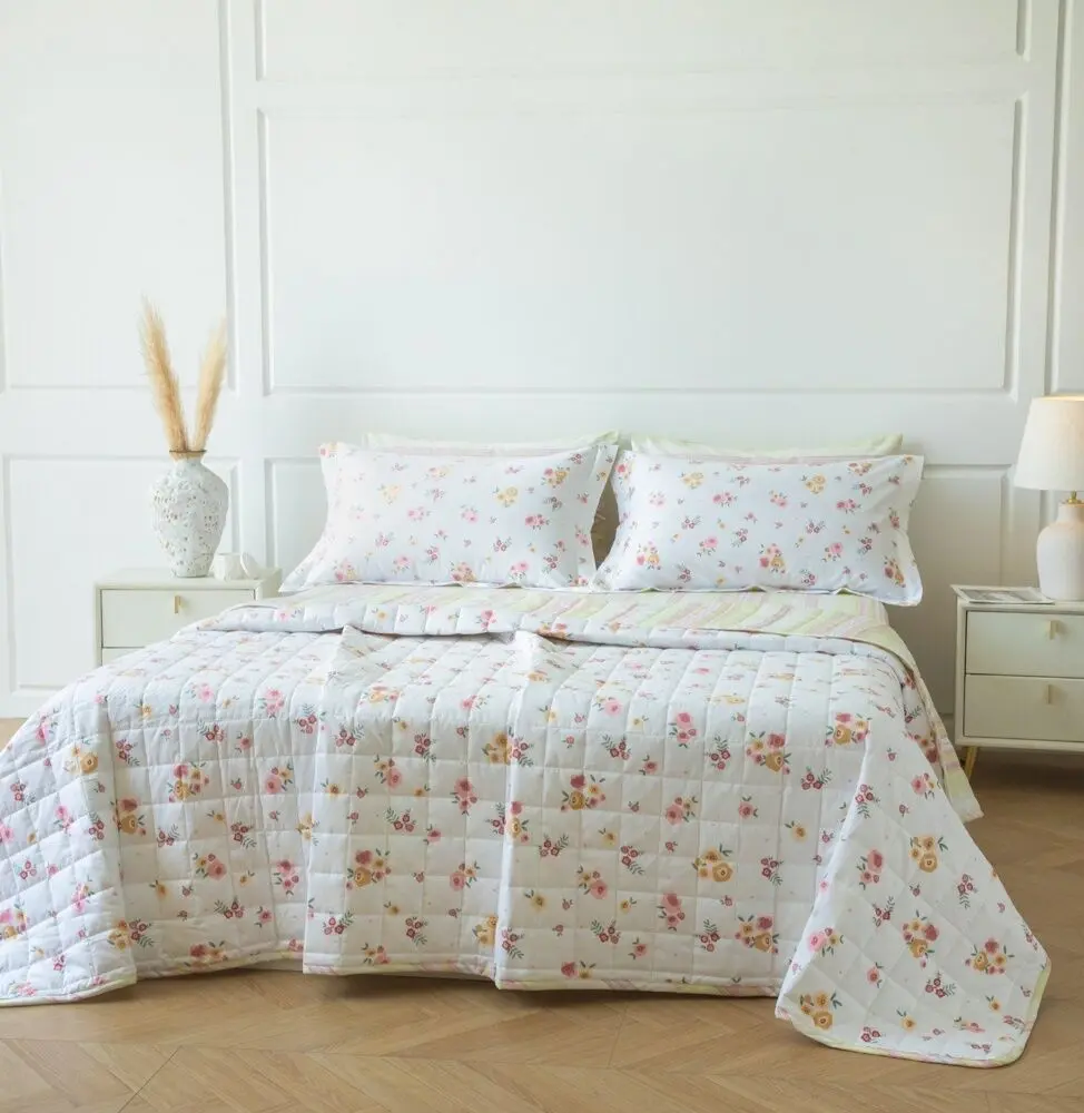 سمرلاند لحاف صيفي مضغوط مفرد ونص برسومات الزهور أبيض 4 قطع صُمم ليكون خيارك المثالي طوال السنة. خفيف وناعم في الصيف، ويمنحك دفئًا إضافيًا في الشتاء. بفضل خامته القطنية وحشوته المضغوطة، يجمع بين الراحة والعملية ليضفي لمسة أنيقة على غرفة نومك باللون الأبيض النقي.