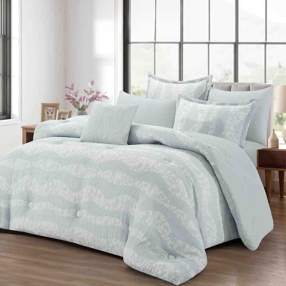 طقم لحاف ويفي صيفي كوين 4 قطع - ازرق