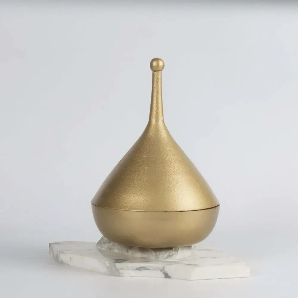 علبة مخروطية صغيرة بتصميم أنيق وعصري، مثالية لتخزين الأشياء الصغيرة أو استخدامها كقطعة ديكور على الرفوف والطاولات. صُنع هذا المنتج من الألمنيوم مع تشطيب نحاسي مطفي يعطيه لمسة فاخرة وراقية. يمكن استخدامه بمفرده أو تنسيقه مع الأحجام الأكبر للحصول على تصميم مميز ومتناسق في المكان.