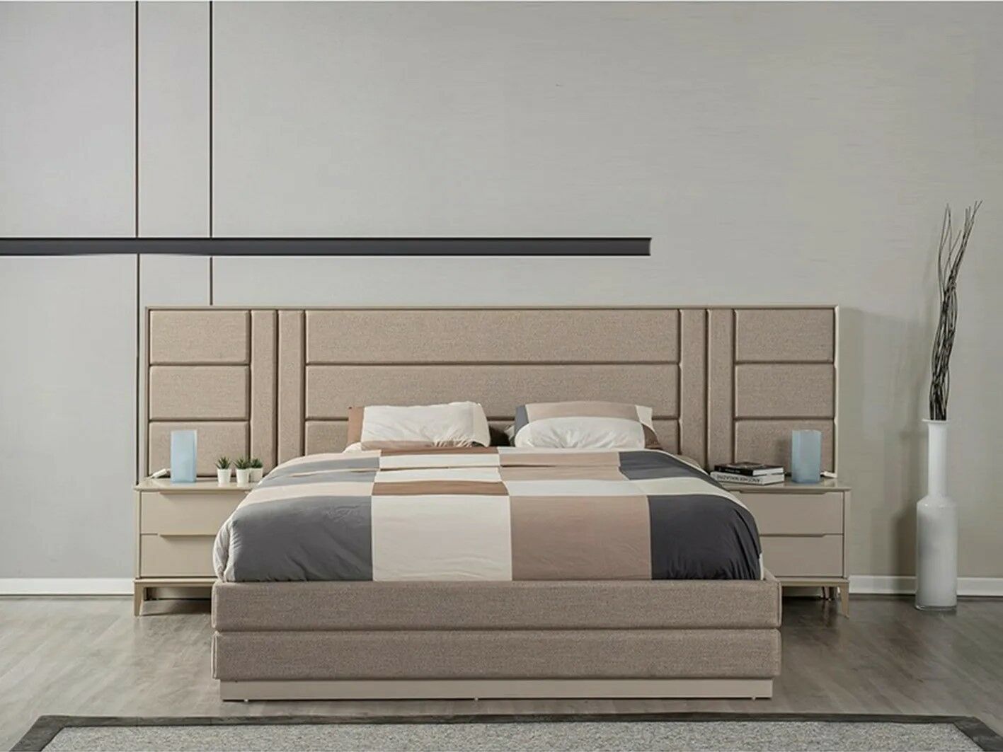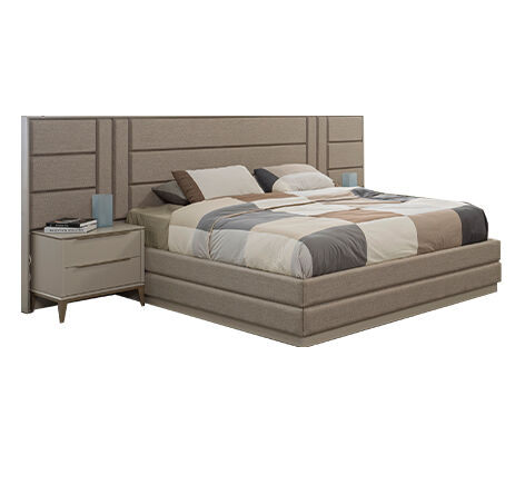 مقاسات السرير: الطول 305 سم - العرض 210 سم - الارتفاع 130 سم مقاس الكمدينو: الطول 60 سم - العرض 45 سم - الارتفاع 50 سم أبعاد وحدة الأدراج: الطول 60 سم - العرض 45 سم - الارتفاع 110 سم أبعاد طاولة المدخل: الطول 130 سم - العرض 45 سم - الارتفاع 80 سم |