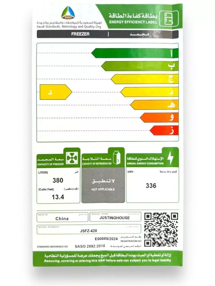 فريزر جستنغ هاوس - 380 لتر