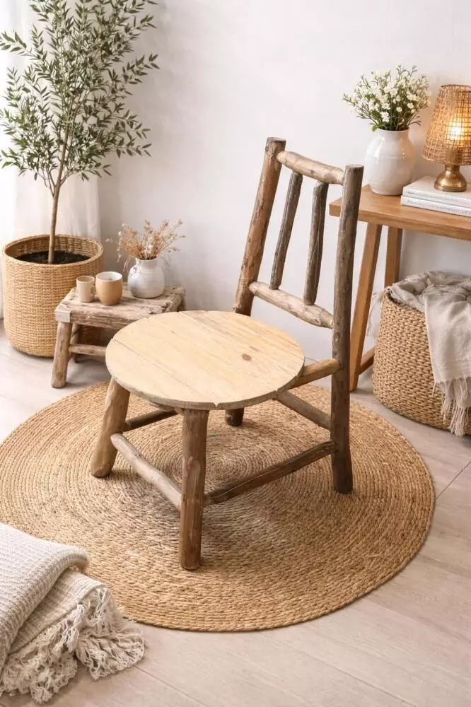 أضف لمسة دافئة وطبيعية إلى منزلك مع هذا الكرسي الخشبي المصنوع يدويًا من جذوع خشب طبيعية بتصميم ريفي مميز يجمع بين البساطة وروح الديكور البوهو العصري. يتميز كل كرسي بتفاصيله العضوية الفريدة التي تحافظ على شكل الخشب الطبيعي، مما يجعل كل قطعة مختلفة قليلًا ويمنحها طابعًا خاصًا ولمسة فاخرة. بفضل ألوانه وملمسه الطبيعي الجذاب، يعد خيارًا مثاليًا لإضفاء جو دافئ على زوايا القهوة، المداخل، غرف المعيشة أو غرف الأطفال، كما يمكن استخدامه كقطعة ديكور أنيقة بجانب طاولة قهوة أو ضمن تنسيقات تعتمد على السجاد الطبيعي والنباتات، ليكمل جمالية المساحات ذات الطابع الريفي أو البوهو بأسلوب بسيط وأنيق.