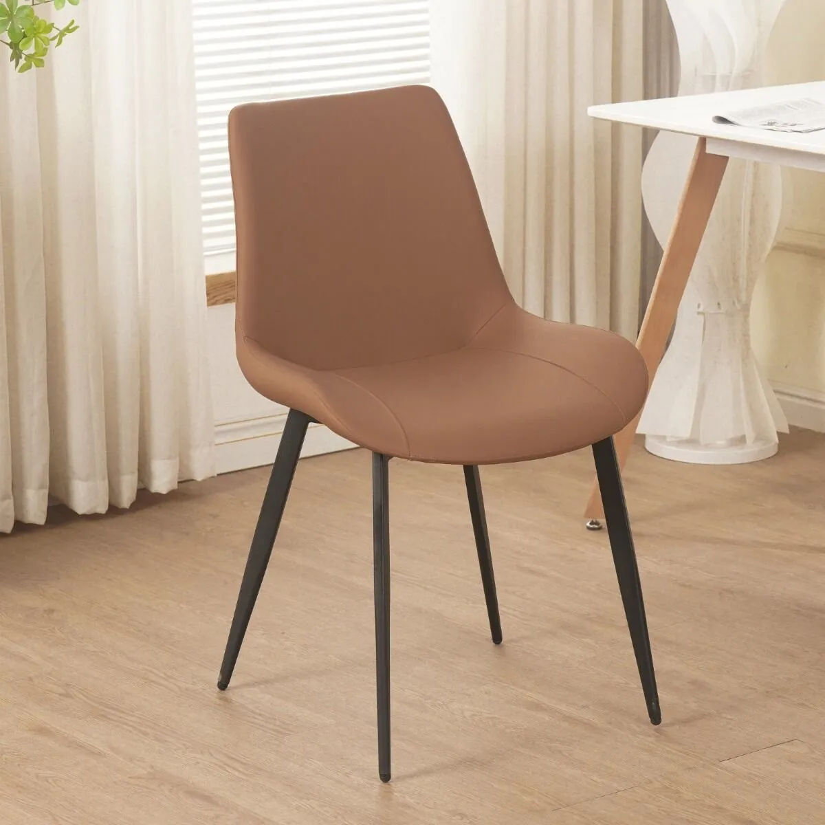 كرسي طعام مياس باللون البني بتصميم فاخر يشكل اضافة عملية وأنيقة لغرفة الطعام الخاصة بك. تم تصنيعه من أجود الخامات المتينة والمقاومة للعوامل الخارجية ليدوم طويلاً بنفس الكفاءة العالية.مصنوع من الجلد ليضمن لك الراحة اثناء الجلوس