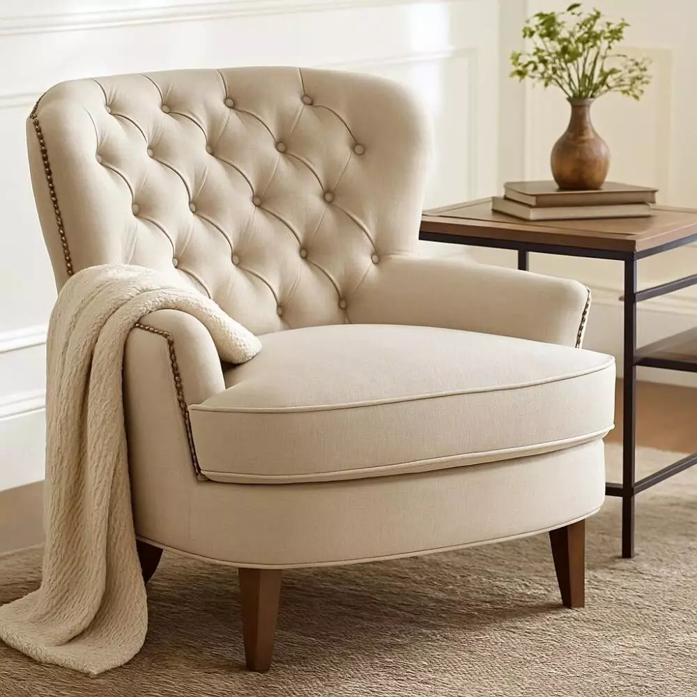 كرسي مفرد بذراعين بتصميم مريح وحضور أنيق يضيف لمسة راقية لمساحة الجلوس ويمنح تجربة استخدام متوازنة.