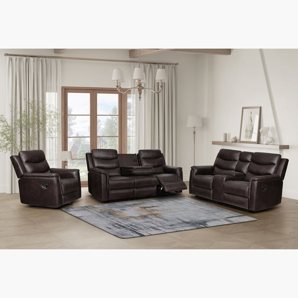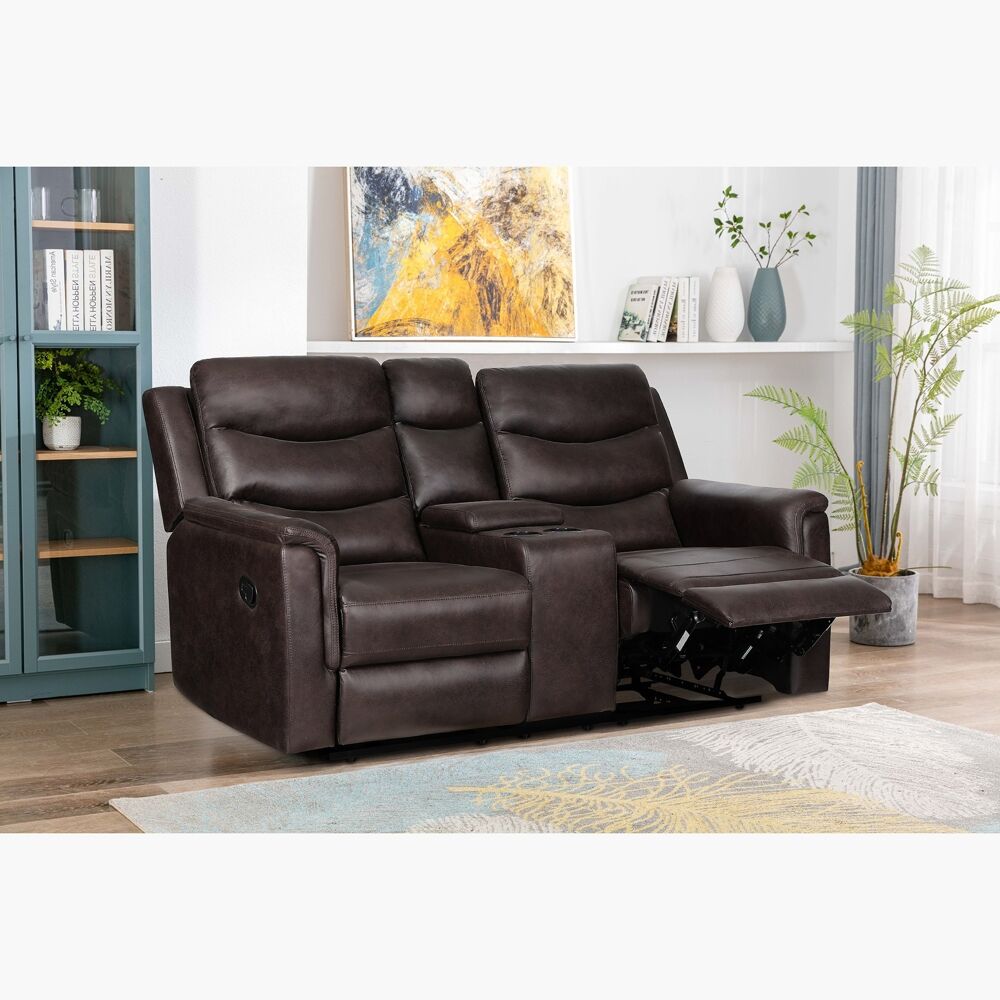 اعتمدي كنبة الاسترخاء الرائعة هذه لإضافة لمسة من الفخامة إلى أثاث منزلكِ، مصممة بتنجيد من الجلد الصناعي ومقعدين مع وحدة كونسول وحامل أكواب، ومصنوعة من خامات عالية الجودة لضمان الراحة والاستدامة. تستخدم صور المنتج المرفقة في أغراض التوضيح والتمثيل فقط.