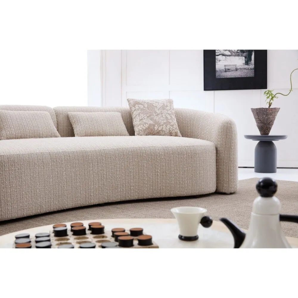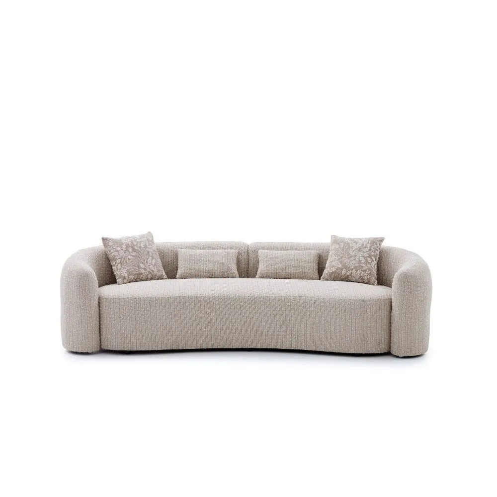 اللون البيج الجميل مع قماش البوليستر يضفي لمسة من الفخامة على أي مساحة معيشة، مع تصميم مريح مع ظهر مريح للجلوس الطويل يوفر تجربة جلوس استثنائية.الخامة: