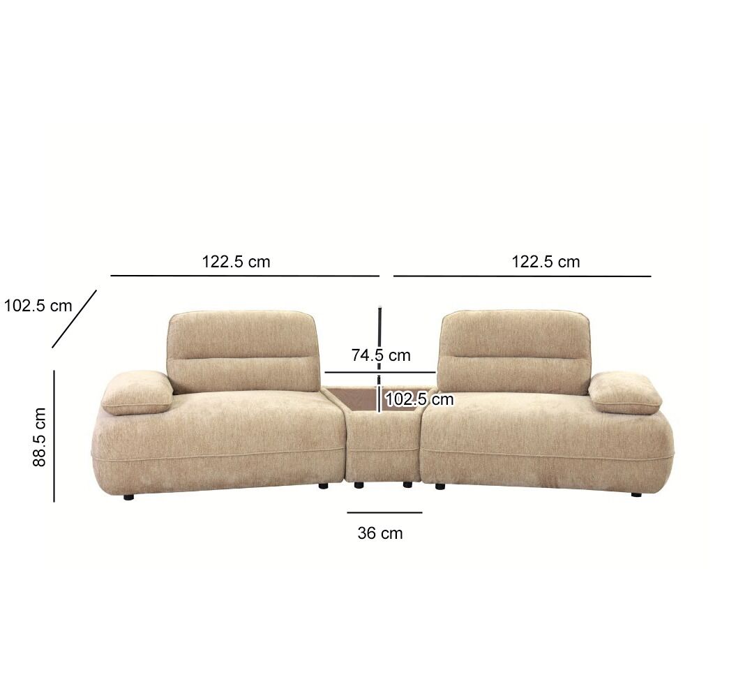كنبة يسار : عرض 122.5 - عمق 102.5 - ارتفاع 88.5 سم
